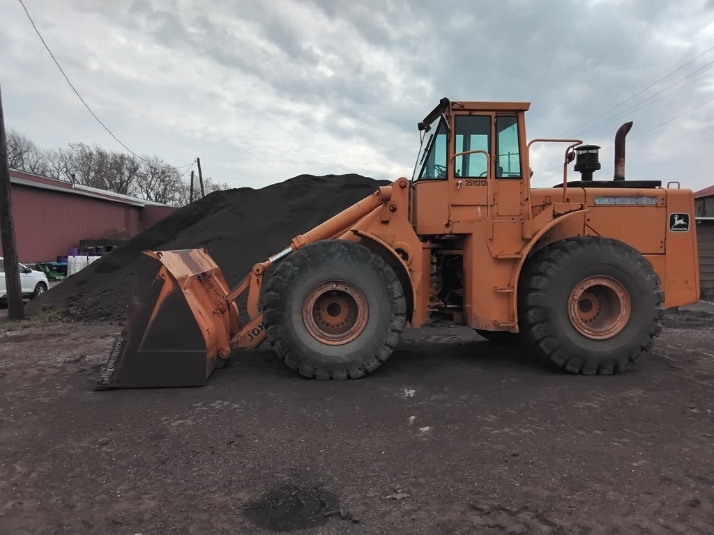 “1980 John Deere 844 Wheel Loader in fair condition, powered by a reliable JD V8 engine. This unit features a 5 cubic yard general-purpose bucket with a bolt-on cutting edge and 26.5-25 tires. The hour meter reads 6,541 hours, and it has recently been serviced, with the lift and bucket cylinders repacked. The loader is equipped with an enclosed ROPS for added safety. Well-maintained and ready to go, this John Deere 844 is perfect for the next project.”