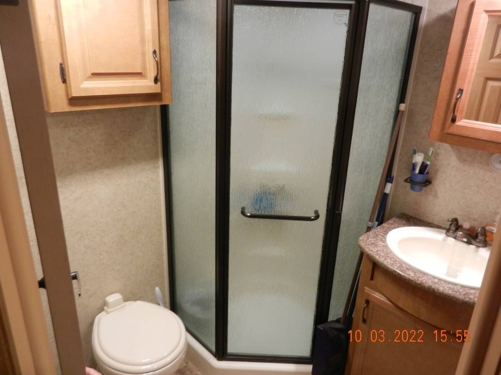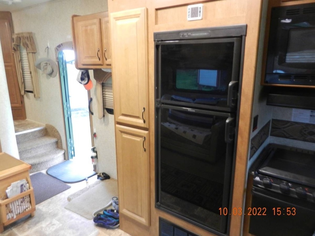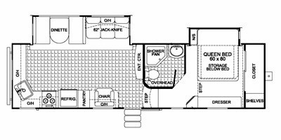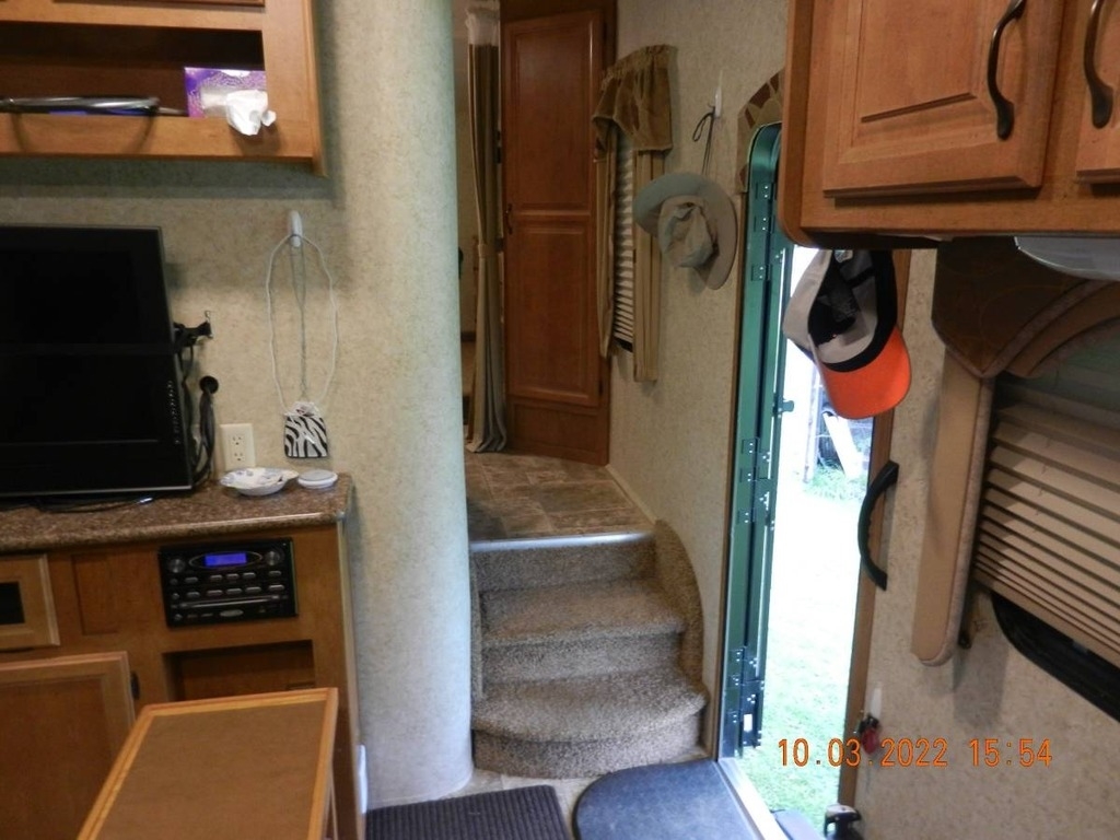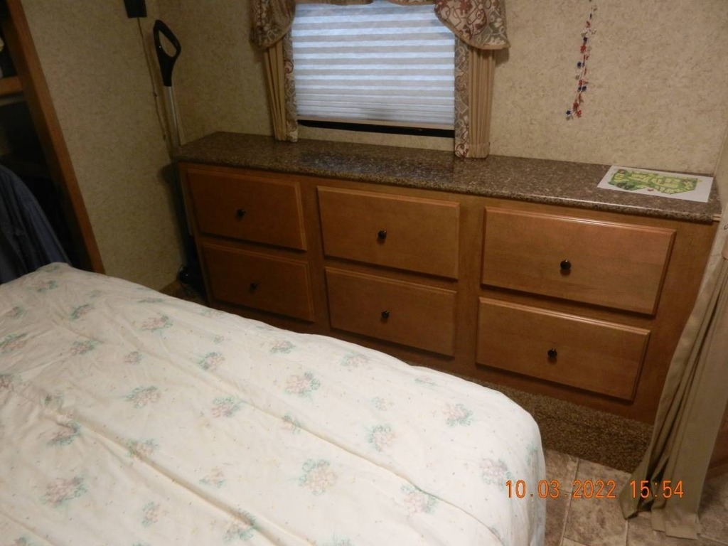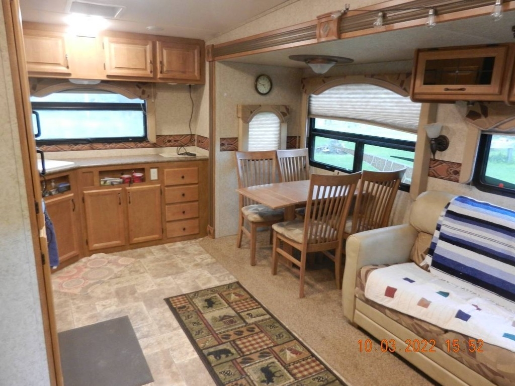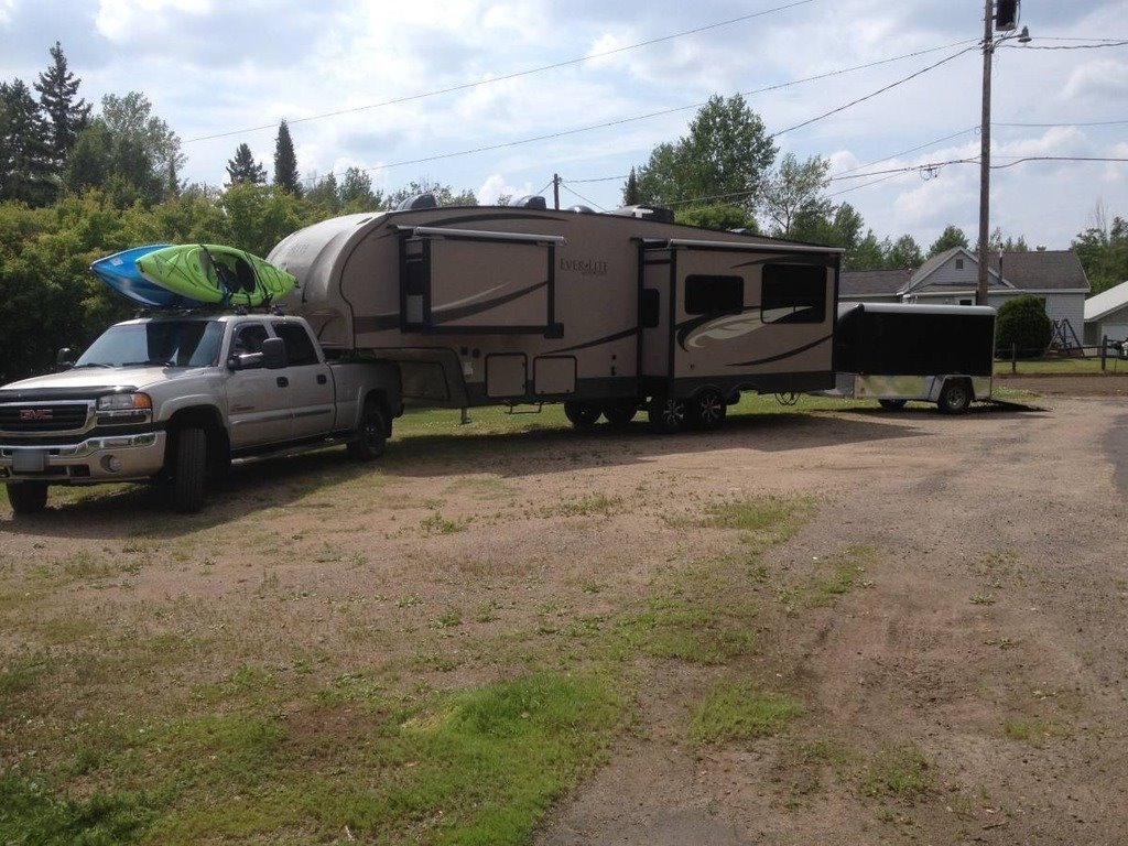 “Bought this from first owner in 2015. 1 year only on this production. Ever-Lite made by Evergreen, model 31RKS-5 , all composite, rubberized roof. Dry it still comes in at 8200 pounds. 60-gallon fresh water and 1 sewage plus 2 more dump tanks. 2 batteries and a small factory solar panel on the roof. 50-amp service, but I misplaced that cord and use a 50-amp to 30-amp adapter. All manuals included. Custom receiver hitch for towing behind the camper by the first owner. I made custom bumper mounts for (2) 0 gravity chairs and another mount for corn hole ( bean bag) boards. 2015 I also added slide awnings. Reese Revolution towing pin box swivels on camper instead of hitch making backing up camper much easier. Easy to set up on your hitch. My only complaint is the exterior finish. Even though it's stored in a poll barn every winter, decals have cracked and front cap is faded. I tried numerous times by hand to get the cap shiny. I think a buffer and the right product would work well. The camper is emptied of stuff and cleaned for sale, also just winterized for storage.