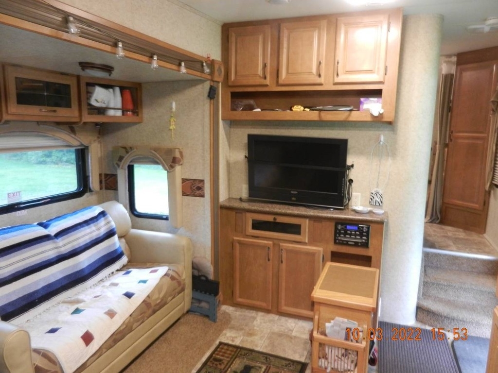 This Ever-Lite has an overall length of 31.83 feet and comes equipped with 2 power retractable slide-outs, 1 power retractable awning, 1 A/C unit, a solar panel, and plenty of room to sleep 4. This unit has been well-maintained.