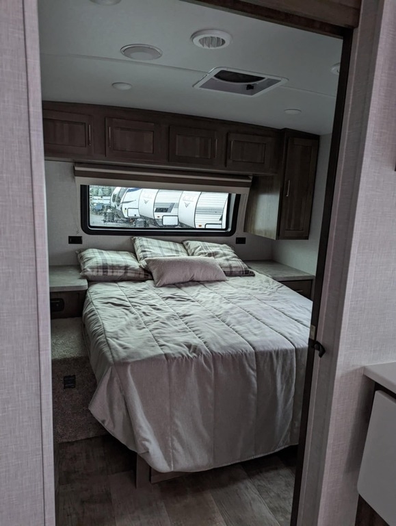 equipped with 2 power retractable slide-outs, 1 power retractable awning, 1 A/C