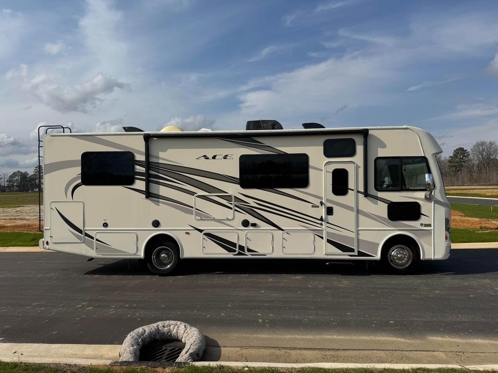 Looking for a well-equipped, easy-to-drive Class A motor home that’s family-ready and adventure-proven? This 2018 Thor A.C.E. 30.4 is the perfect balance of size, comfort, and features — with only private ownership and well-maintained condition. Built on a Ford F-Series Super Duty chassis and powered by a strong 6.8L Triton V10 engine with 320 HP and 460 lb.-ft of torque, it delivers smooth highway performance and a towing capacity of 8,000 lbs.