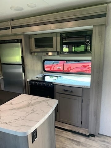 appliances, a large refrigerator, and plenty of cabinet space. The rear master
