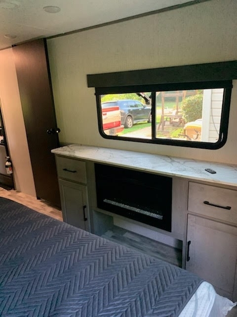 slide-outs, a 23-foot power awning, 2 A/C units, 2 fireplaces, an outdoor