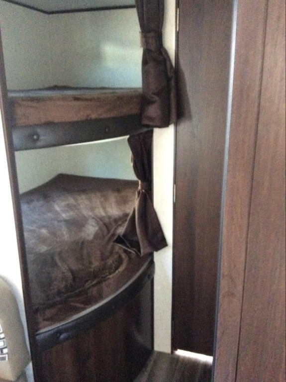 with a 16-foot power-retractable awning, 1 A/C unit, bunk beds, and room to