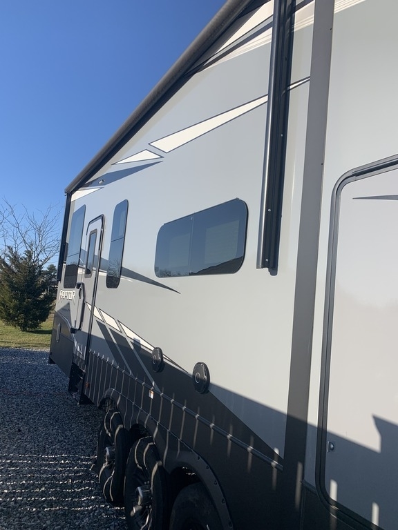 This 2020 Keystone Raptor 423 comes equipped with 3 slideouts, 2 awnings, 3 air conditioners, and at 45 feet, there is plenty of room to sleep 6. This is a non-pet/non-smoking RV and there have not been any accidents or water damage.