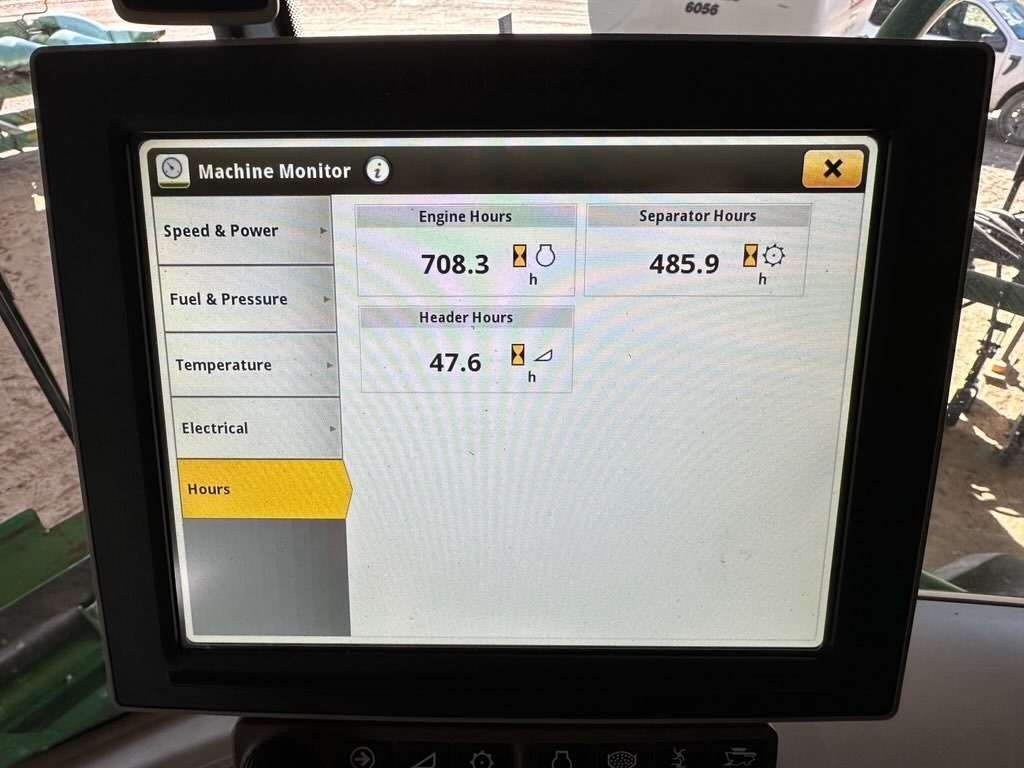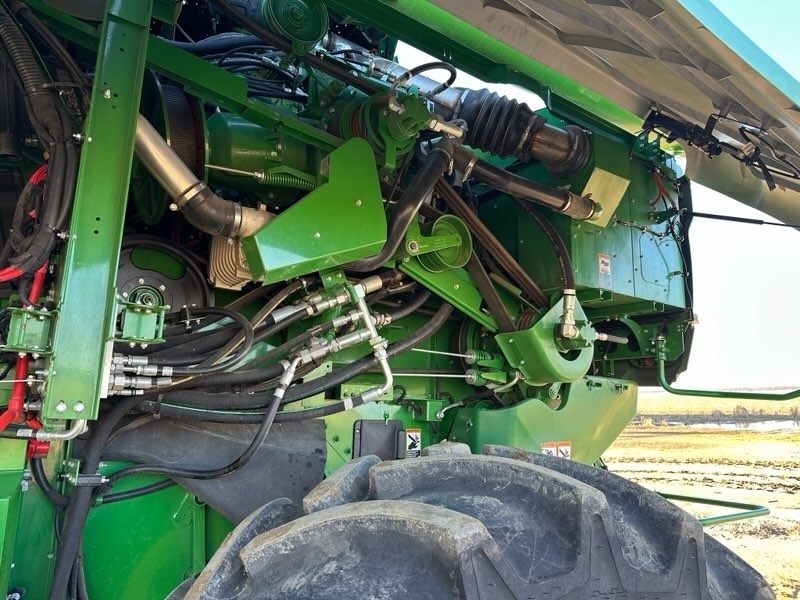 “2023 John Deere S790 Combine in excellent used condition with only 708 engine hours and 486 separator hours. This machine is set up for corn and soybean harvest on conventional terrain and features PRWD (ProDrive Rear Wheel Drive) for enhanced traction and performance in the field. It includes a premium cab with air conditioning for operator comfort, along with a yield monitor for precision harvesting. The combine is covered by an extended warranty through August 2025, giving you added peace of mind as you head into the next season. Well-maintained and ready for work, this is a top-tier machine with low hours and premium features.”