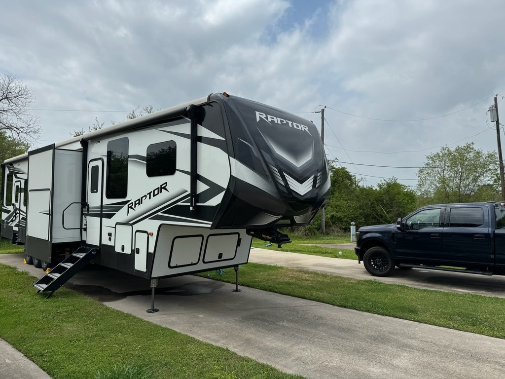 Up for sale is our 2021 Keystone Raptor 423 Toy Hauler — a top-tier, luxury fifth wheel built for adventure and comfort. This RV has been well cared for and is in excellent condition. Includes Extreme Weather Package, 2-60gal Fuel Station, and Solar Panels. Whether you’re hauling your toys to the dunes or setting up for full-time living, the Raptor 423 is fully loaded and ready to go.