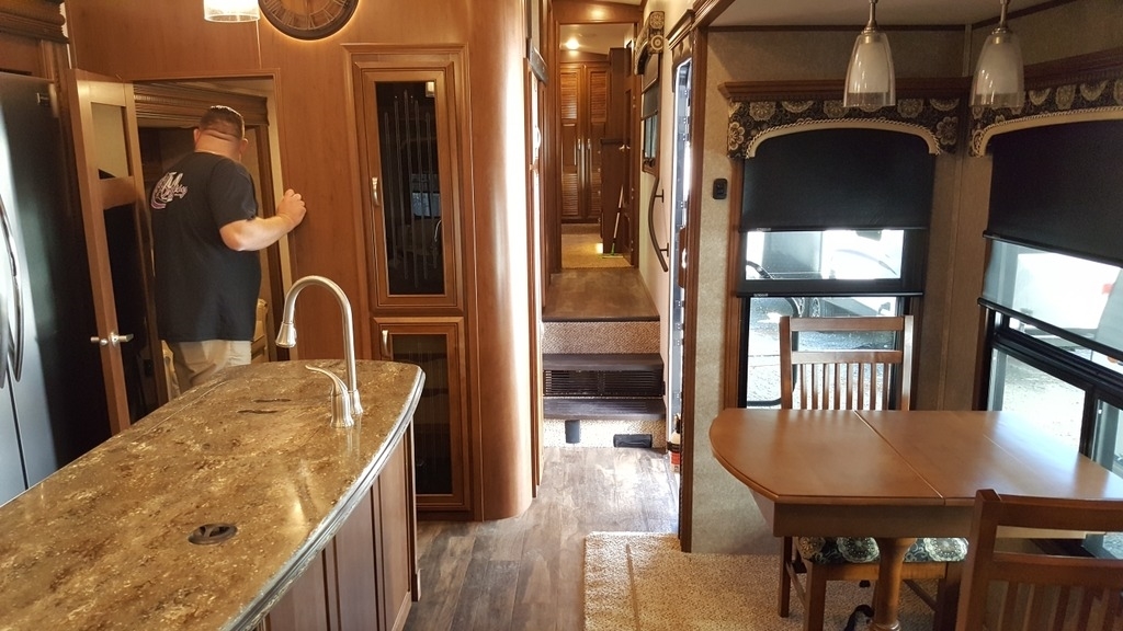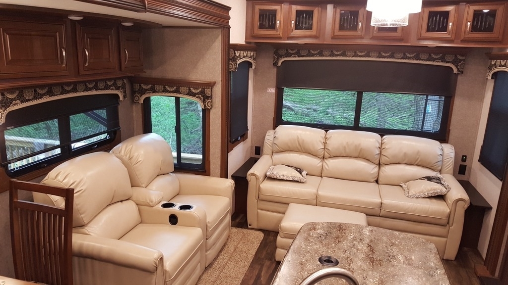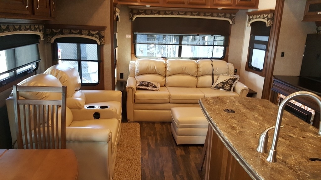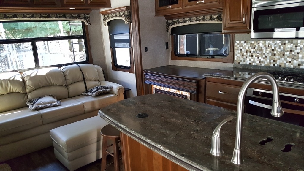 This Jayco Pinnacle has an overall length of 41.7 feet and comes equipped with 4 power retractable slide-outs, 2 power retractable awnings, 2 A/C units, an office area, a loft, an outdoor kitchen, and plenty of room to sleep 8. This unit has been well-maintained.