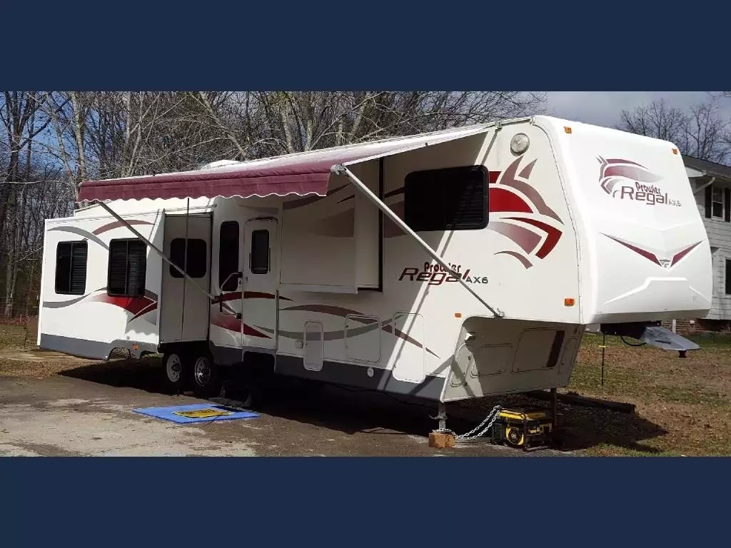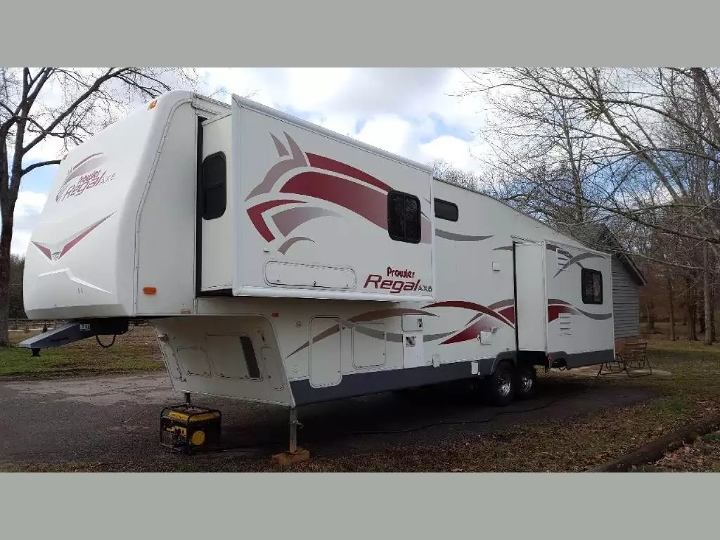 Start your travel adventures today with this beautiful 38-foot Prowler Regal Fifth Wheel. This Prowler Regal sleeps 8, has 1 bathroom, has 4 slide outs and 1 awning.