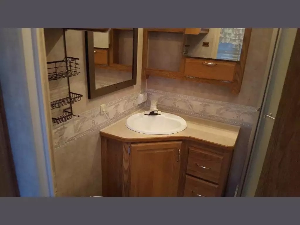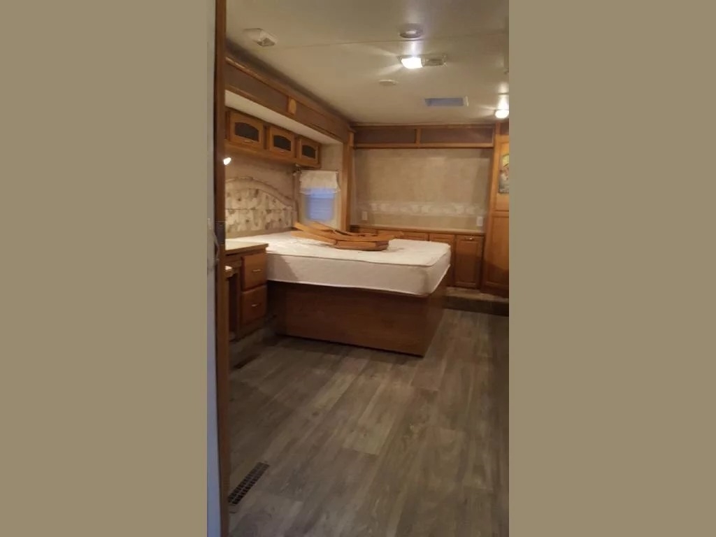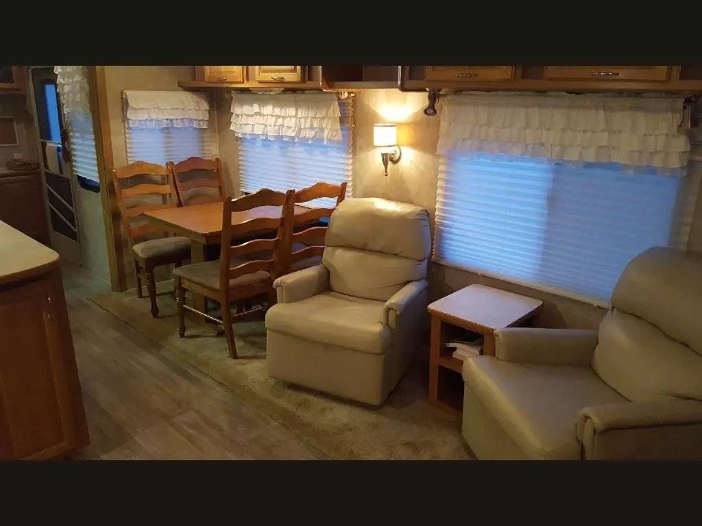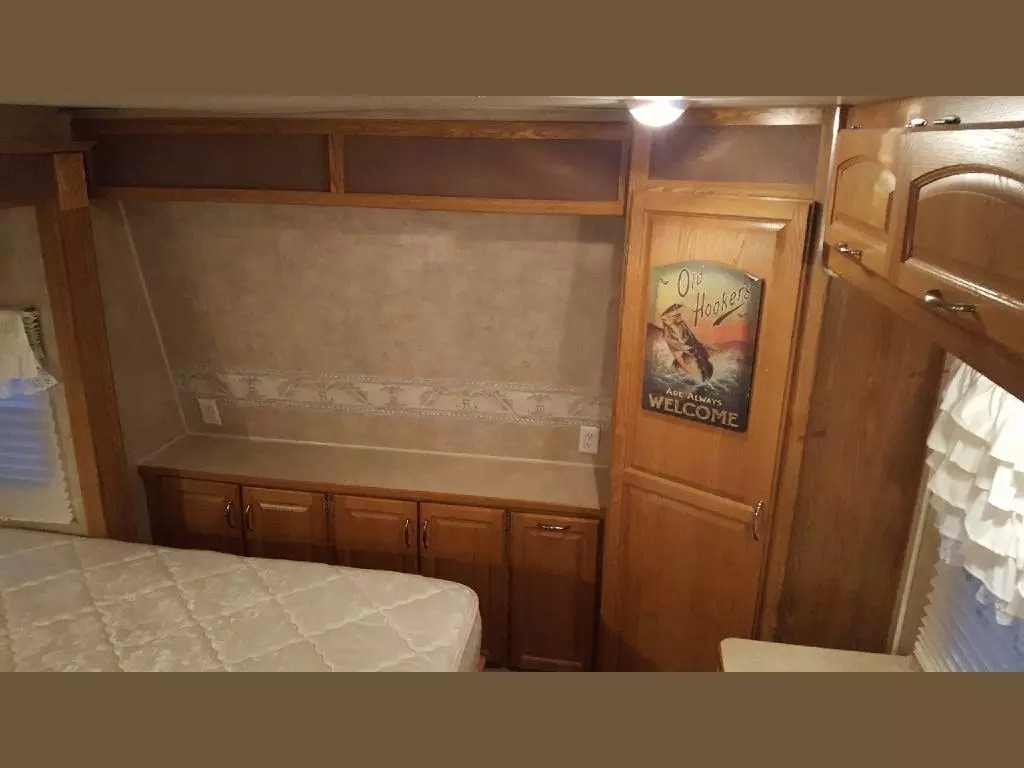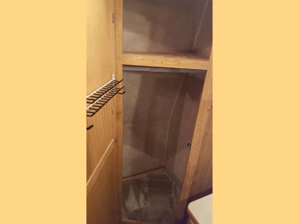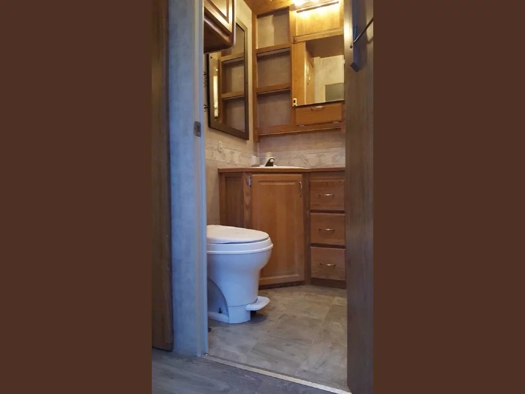 SELLERS NOTES: Shaw Ultra Resilient Vinyl Flooring (gray wood-grain) was installed last April. There are no TV’s or surround sound in the unit. There are custom window drapes throughout the coach. The awning was replaced to match the maroon trim. There is NO water damage in the unit. Included in the sale is the full length ventilated cover for the coach. The cabinetry with sink in the kitchen is adjustable. It can slide as a unit to give extra space in the kitchen or for the walkway.