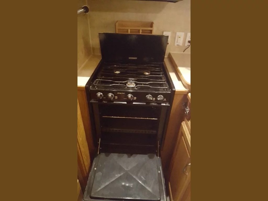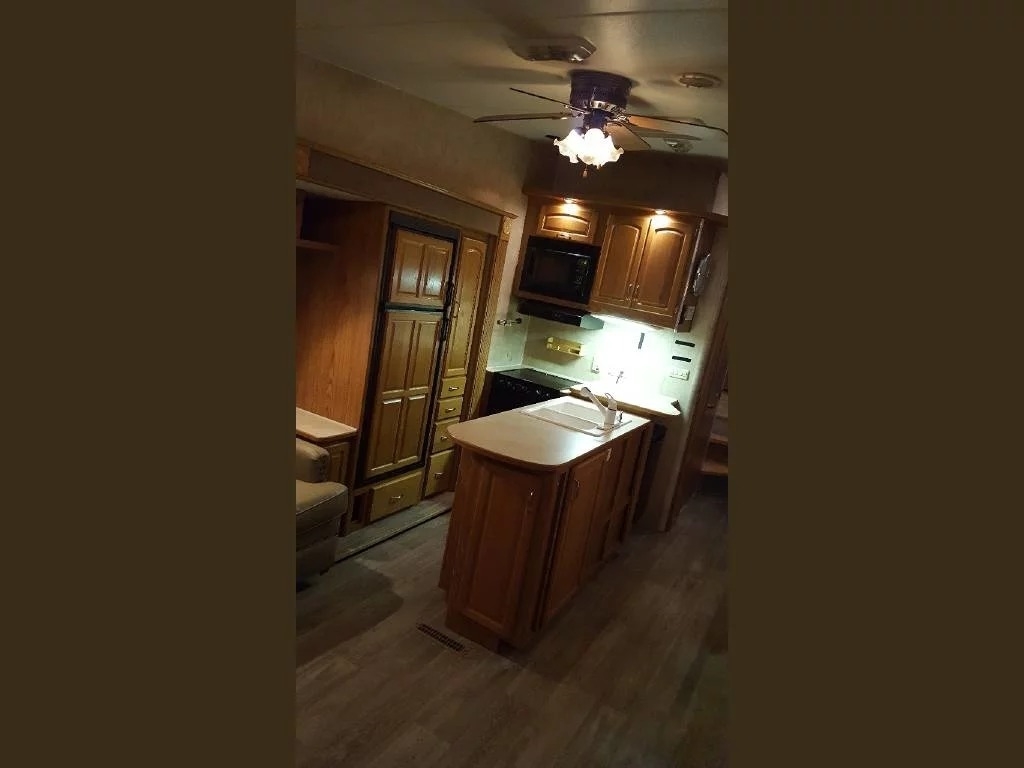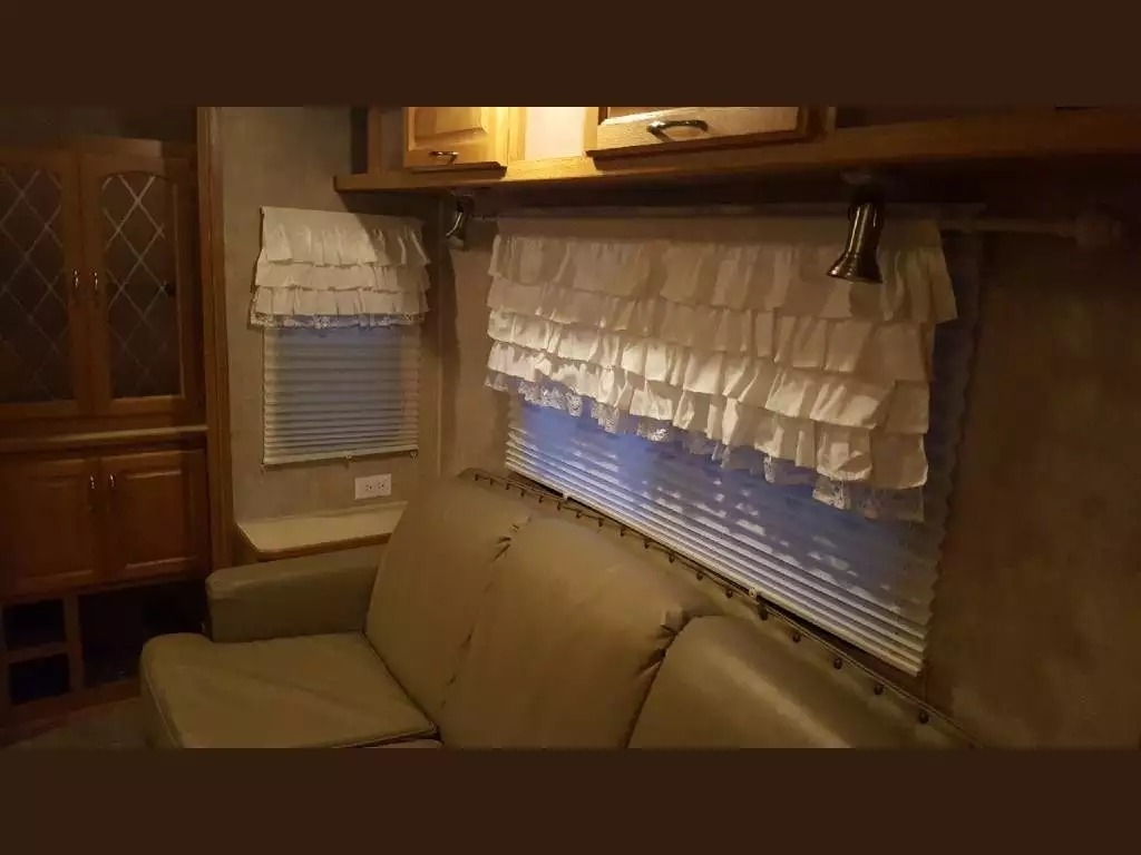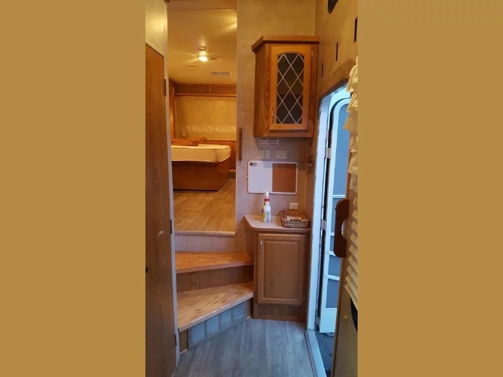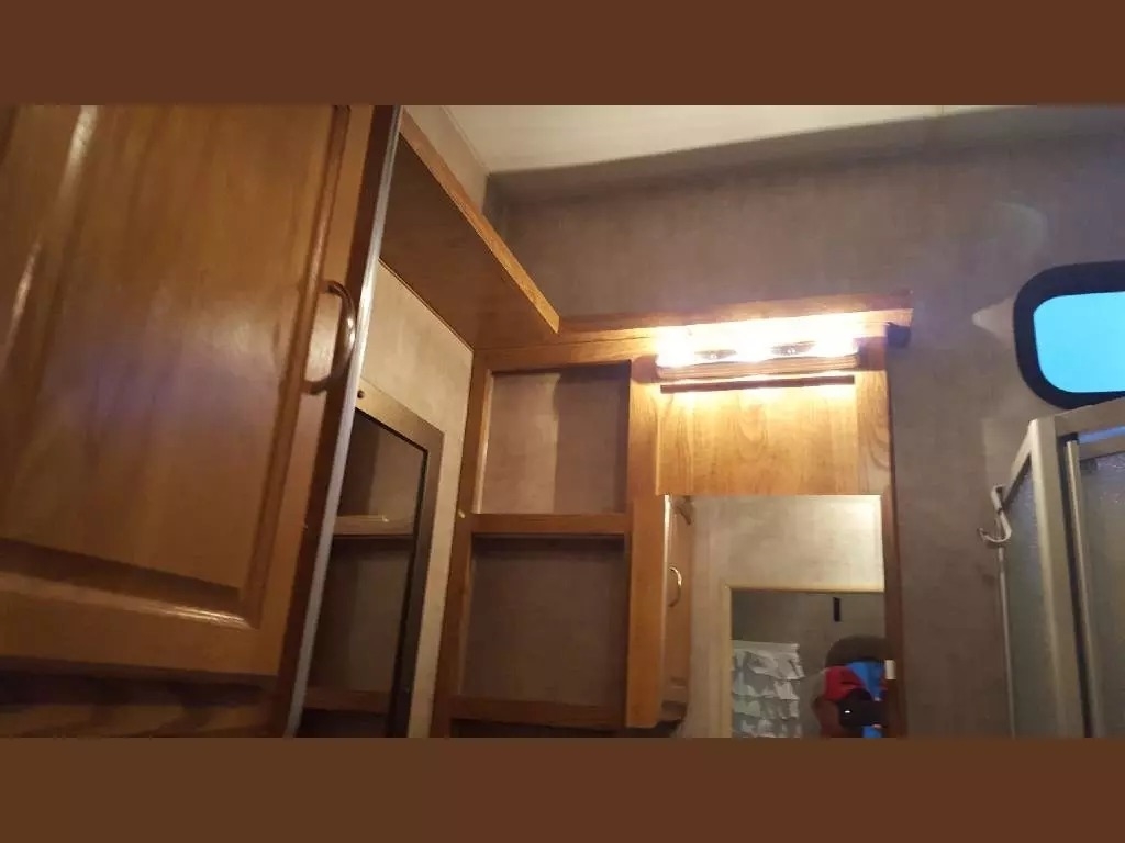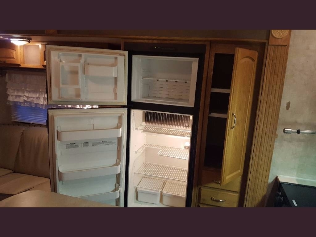SELLERS NOTES: Shaw Ultra Resilient Vinyl Flooring (gray wood-grain) was installed last April. There are no TV’s or surround sound in the unit. There are custom window drapes throughout the coach. The awning was replaced to match the maroon trim. There is NO water damage in the unit. Included in the sale is the full length ventilated cover for the coach. The cabinetry with sink in the kitchen is adjustable. It can slide as a unit to give extra space in the kitchen or for the walkway.