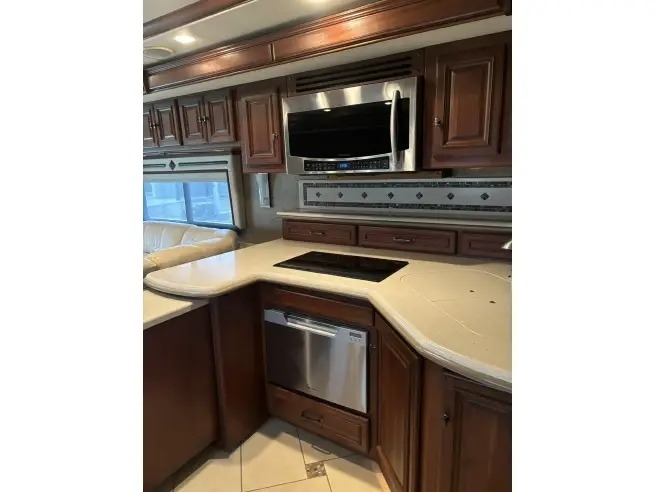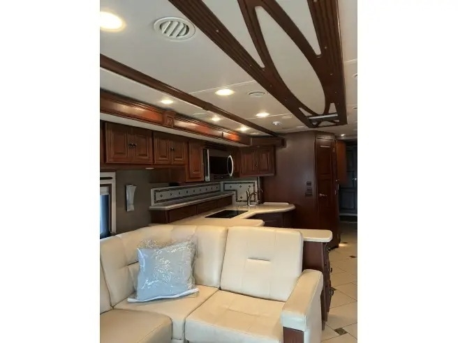 Designed for travelers who appreciate premium living on the road, this Tour features three slide-outs, a bath and a half, king bed suite, 10,000kw Onan diesel Generator, 3 AC Units (2 w/ Heat Pumps), tile flooring throughout and a long list of upscale amenities that make every journey feel like home.