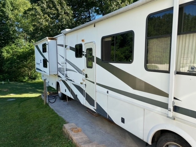 This 2008 Damon Challenger 376 is powered by a Triton V10 6.8L Gas Engine combined with a 6-speed Automatic Transmission on a Workhorse Chassis, with 38,200 Overall Miles. The overall length is 37.58 feet and comes equipped with an Onan 5.5kW Generator, 2 Slide Out, 1 Awning, 2 A/C units and plenty of room to sleep 8. This is a non-pet/non-smoking RV and there have not been any accidents or water damage.