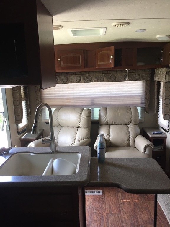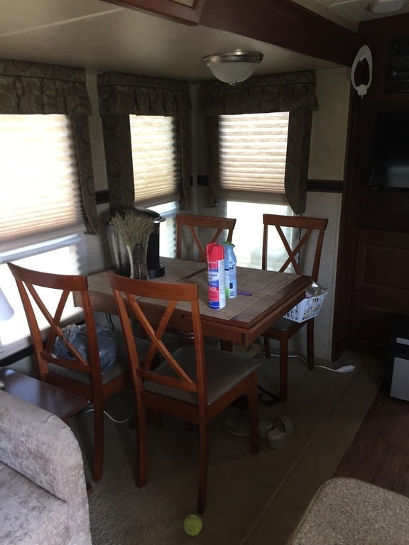 This 2015 Rockwood Windjammer Travel Trailer has an overall length of 35 feet, has 2 Slide outs, an Awning, 2 AC Units and Sleeps 4. This is a non-pet/non-smoking RV and there has not been any accidents or water damage.