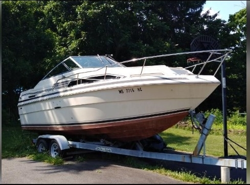 22-ft 1984 Sea Ray 225-Express Cruiser Boat with cabin, galley, head, teak-wood interior & 2-tone