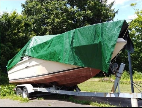 Boat dashboard needs work (knobs & possibly horn); bathroom door needs new latch: trailer needs new tires; buyer may want to replace seats and battery.