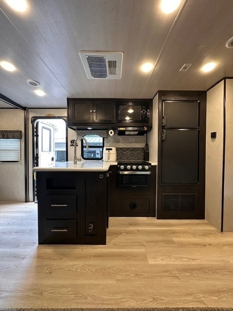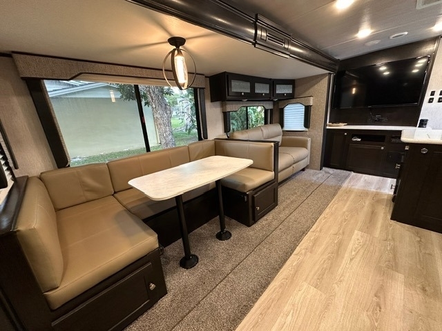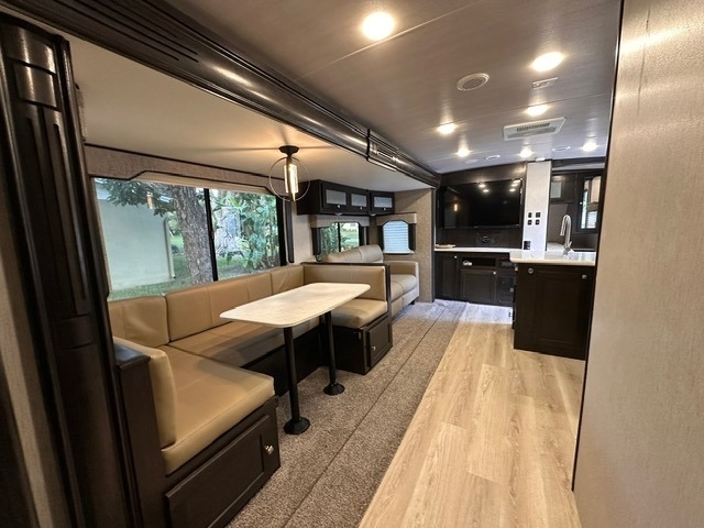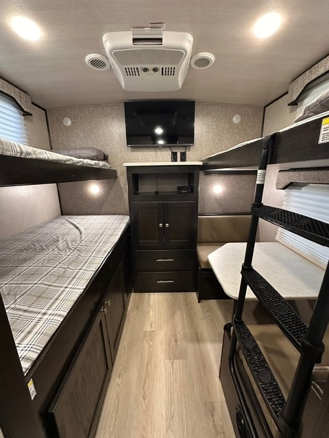 This Heartland has an overall length of 35.29 feet and comes equipped with 1 power retractable slide-out, 1 power retractable awning, 2 A/C units, a bunkhouse, an outdoor kitchen, and plenty of room to sleep 9. This unit has been well-maintained.