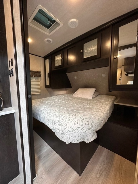 “2020 Heartland North Trail 31QUBH Travel Trailer, offering a blend of comfort and luxury for your next adventure. The Urban Cottage interior décor creates a warm, inviting atmosphere, while the North Trail Lightweight Package ensures easy towing. There is new marine-grade upholstery on the couch and all cushions, which was done in December 2024. This trailer also features the North Trail Kitchen Upgrades Package, offering enhanced cooking amenities, and the North Trail Power Package for added convenience and power. The Ultimate Entertainment Package includes everything you need to enjoy your downtime, while the front cap with LED lights adds a touch of style and functionality. The 15,000 BTU A/C upgrade ensures you stay cool on hot days, and the 50Amp service with 2nd A/C prep provides additional comfort options. Equipped with an RVIA Seal, this well-maintained travel trailer is ready for your next getaway!”