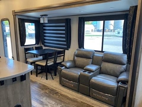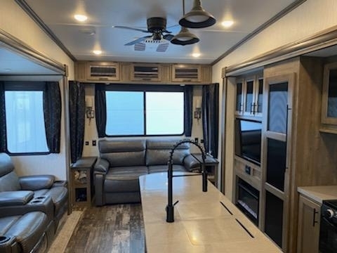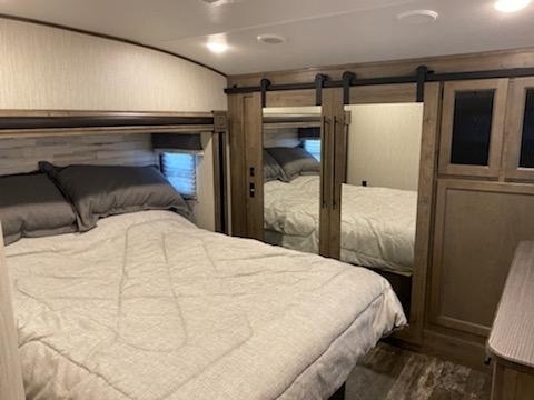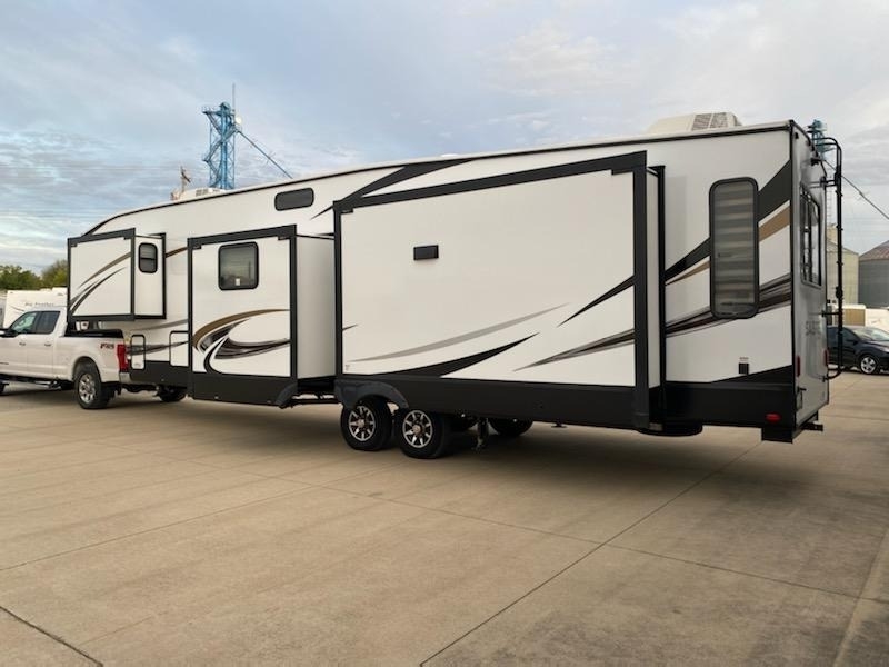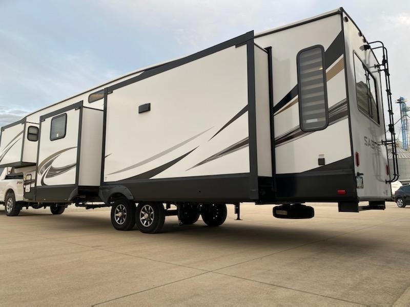 The 2021 Forest River Sabre is nearly 43’ long and comes equipped with 4 slide outs, 1 awning, and two A/C units. 8 people are able to sleep comfortably in the unit. This is a non-pet/non-smoking RV and there have not been any accidents or water damage.
