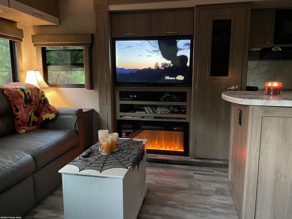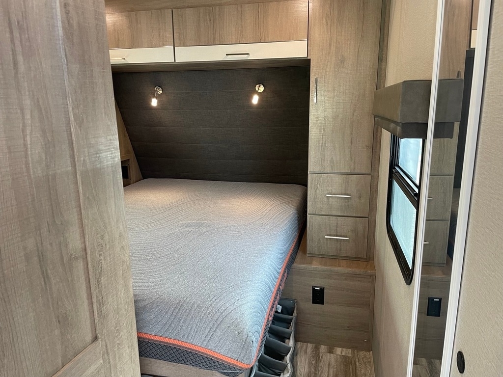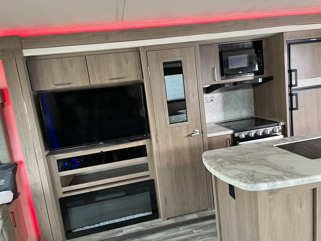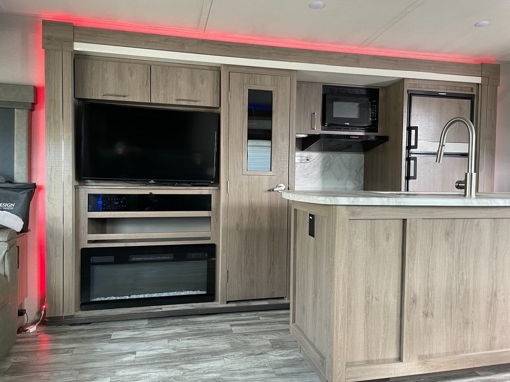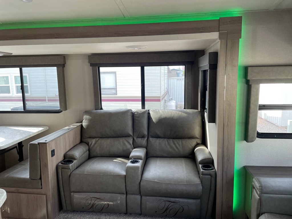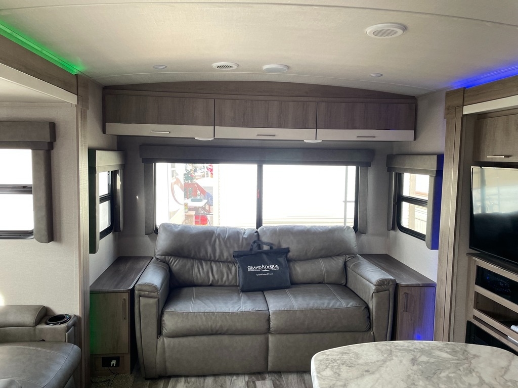 This Grand Design has an overall length of 34’ 2” and comes equipped with a Firman Dual Fuel Inverter Generator, 2 Slide Outs, 2 Power Awnings, 2 AC Units and Room to sleep 6.