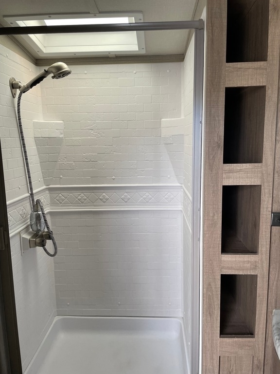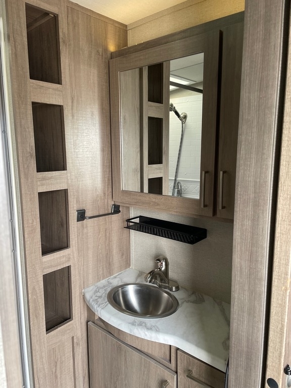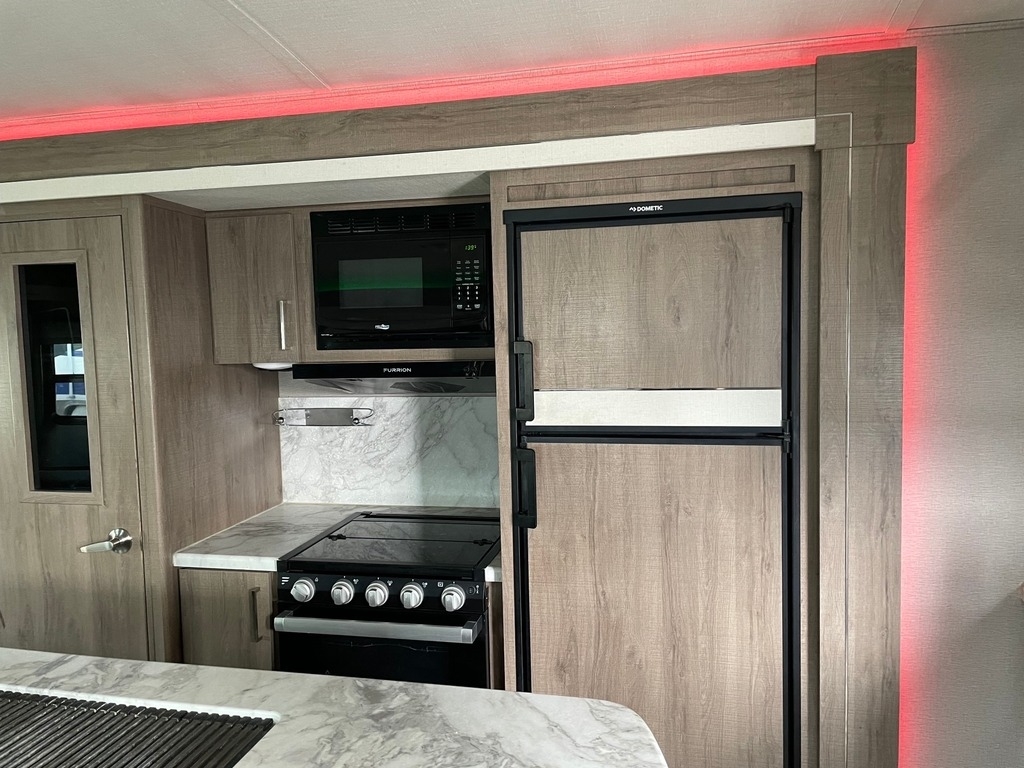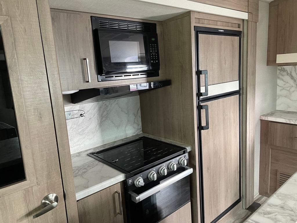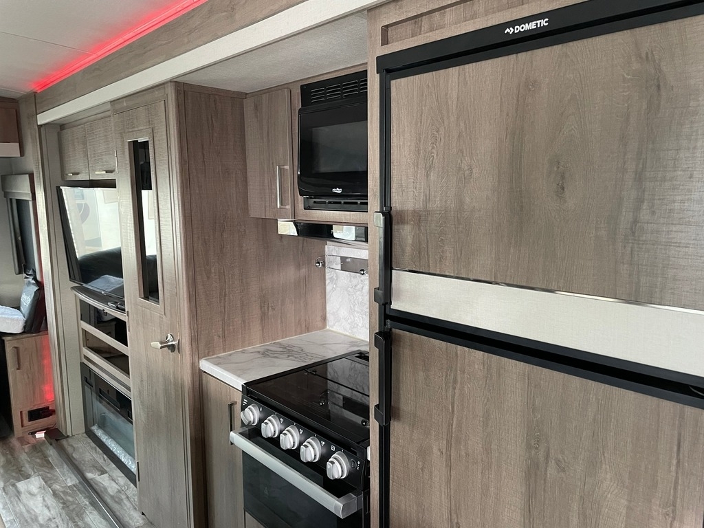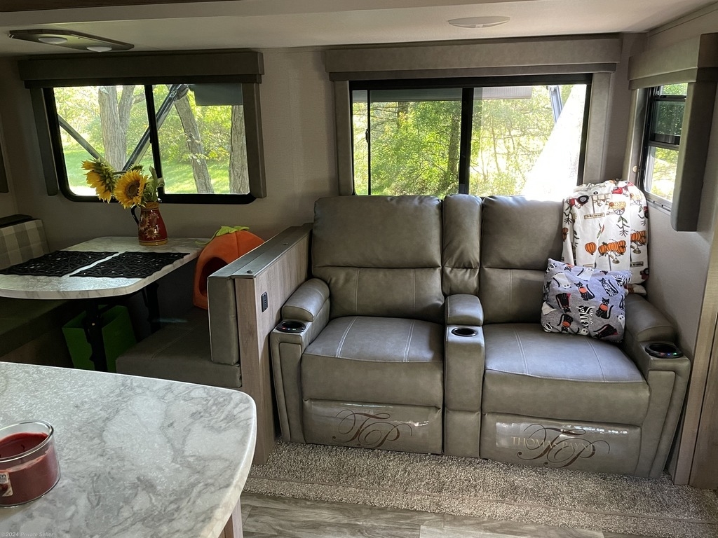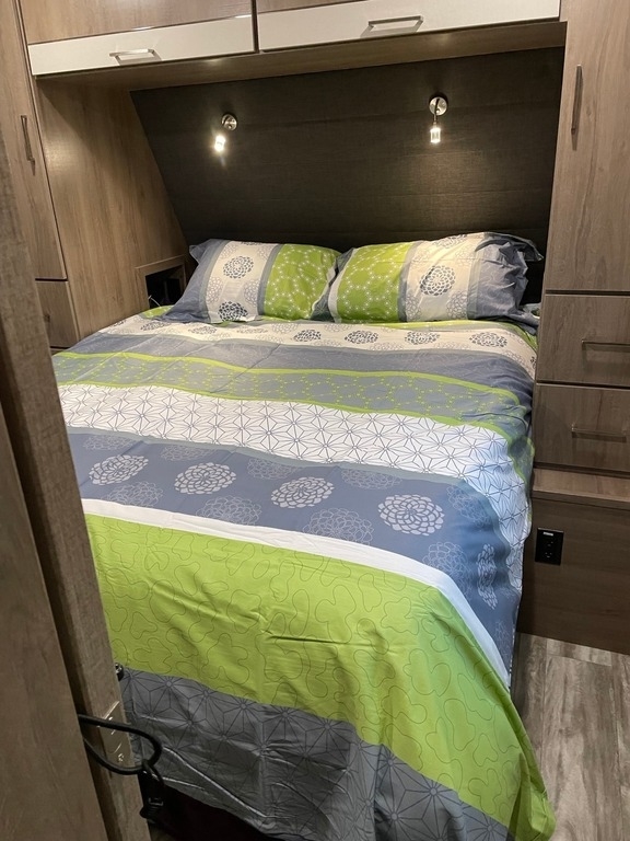 This Grand Design has an overall length of 34’ 2” and comes equipped with a Firman Dual Fuel Inverter Generator, 2 Slide Outs, 2 Power Awnings, 2 AC Units and Room to sleep 6.