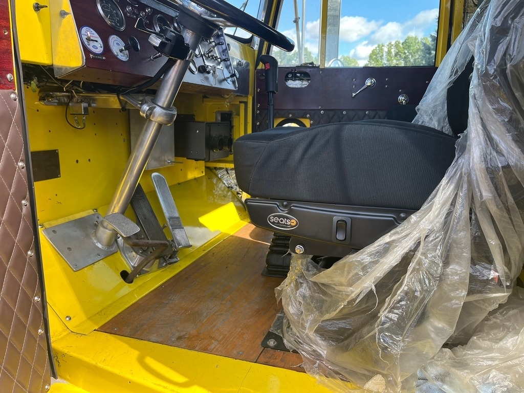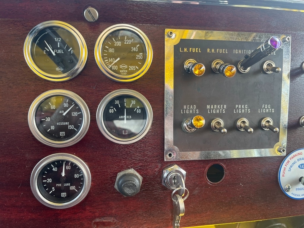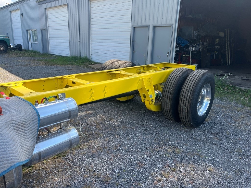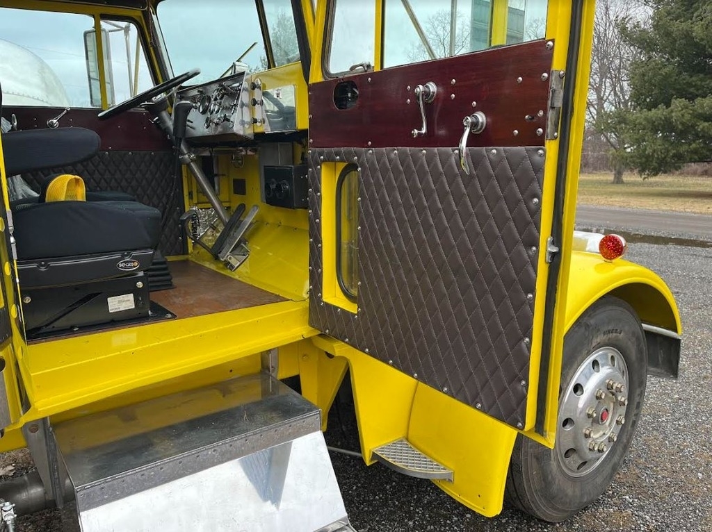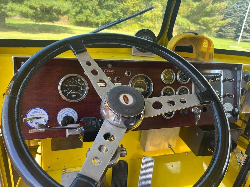 “Ground-up restoration. Air locker rear end. New parts include: drive shaft, tires, battery boxes, 2 AlumiTanks, air tanks, seats, wiring, airlines, air dryer, kingpins, brakes, gauges, glass, radiator, lights, and heater. Lots of powder coated parts & polished metal.”