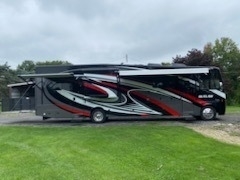 This 2021 Thor Outlaw 38MB is powered by a Triton V8 350 hp engine and a TorqShift 6-spd automatic transmission with 6,000 miles. Equipped with 2 slide-out, 3 awnings, and 2 air conditioners, at 39 feet, there is plenty of room to sleep 8. This is a non-pet/non-smoking RV that has not had any accidents or water damage.