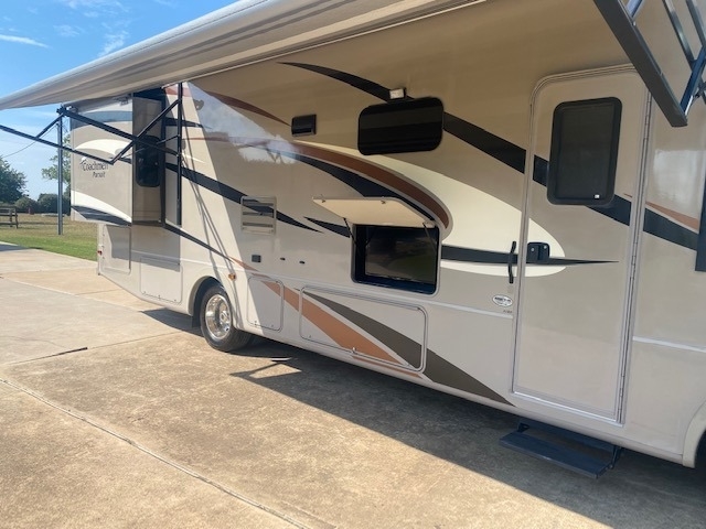 This 2016 Coachmen Class A Motorhome is 32.5 feet long and comes equipped with a 2 slide outs, 1 awning, 2 air conditioning units, and can sleep 7 people comfortably. This coach is powered by a Ford 6.8L V10 gasoline engine, with a 5-speed automatic transmission. The coach has 8,640 miles. This RV comes fully loaded with dishes, sheets, cups, towels, silverware, coffee pot and outdoor rug. Good condition with low mileage.
