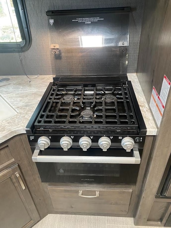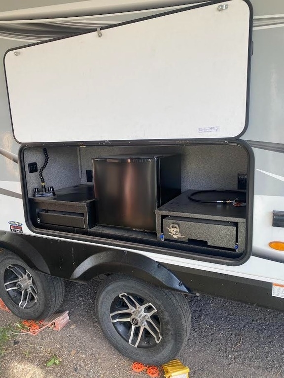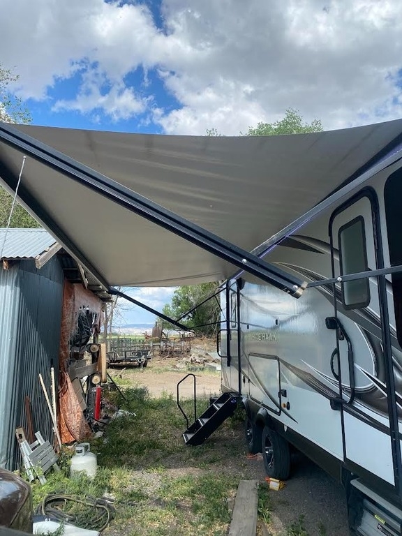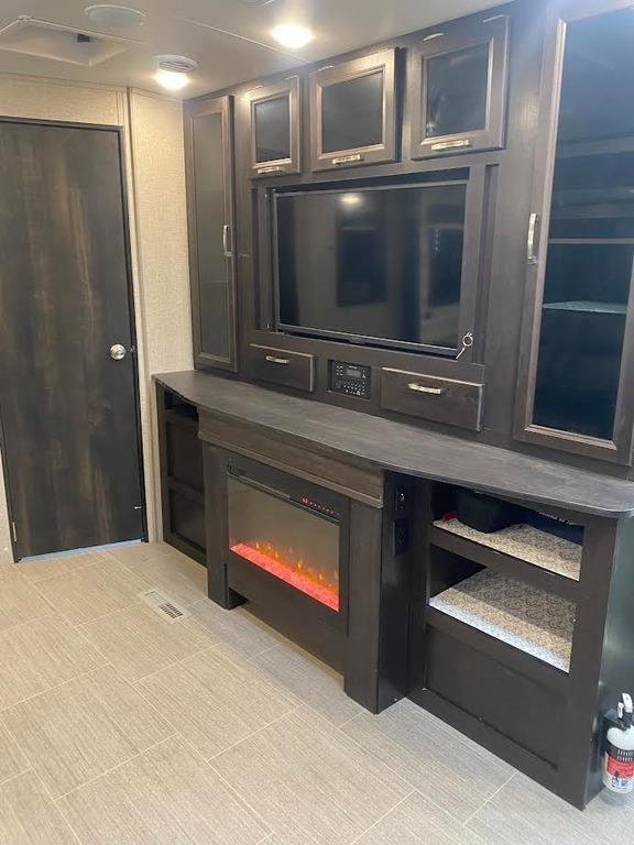 power retractable awning, 1 A/C unit, a fireplace, an outdoor kitchen, and
