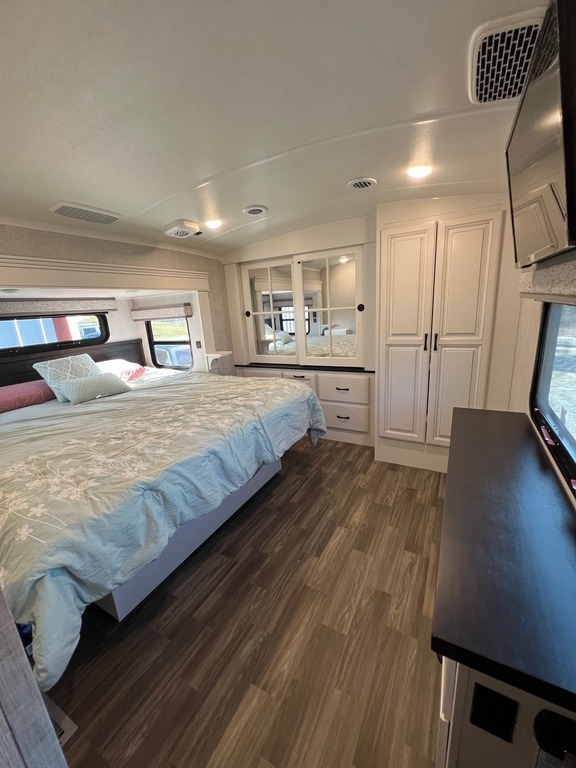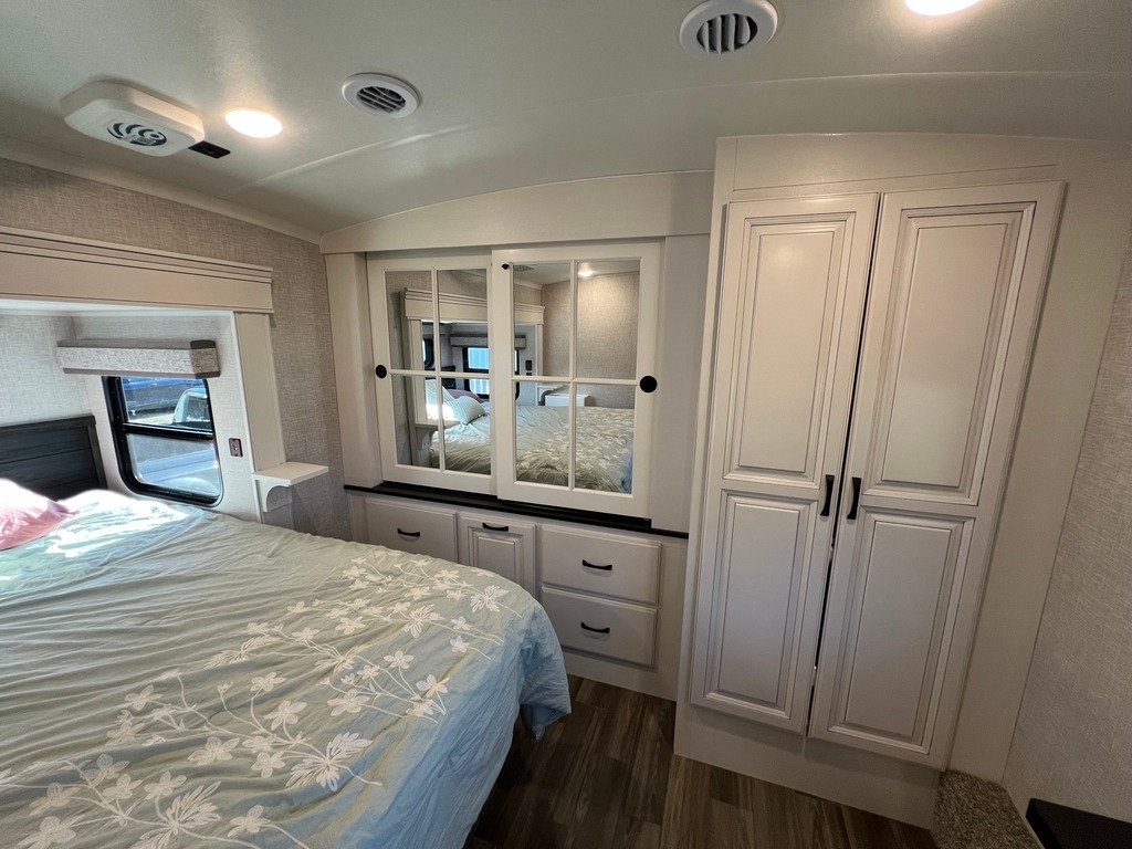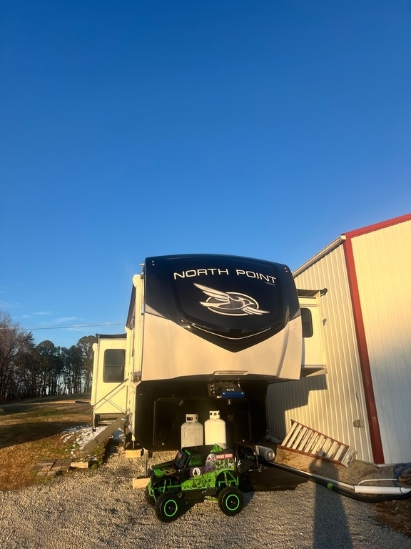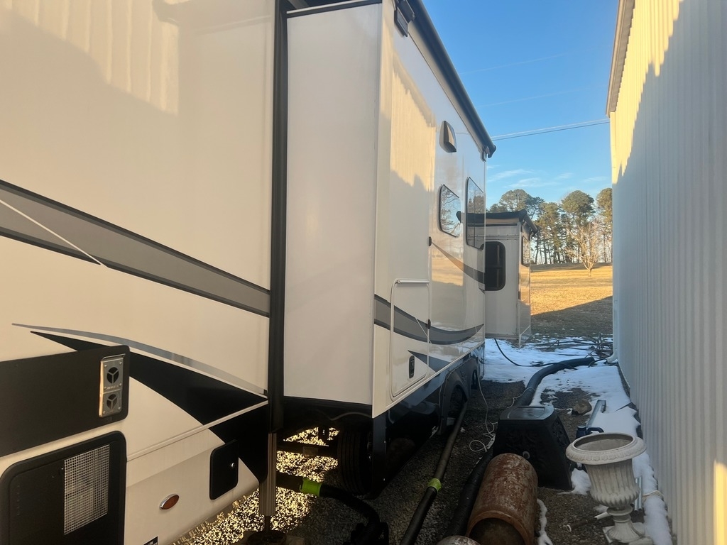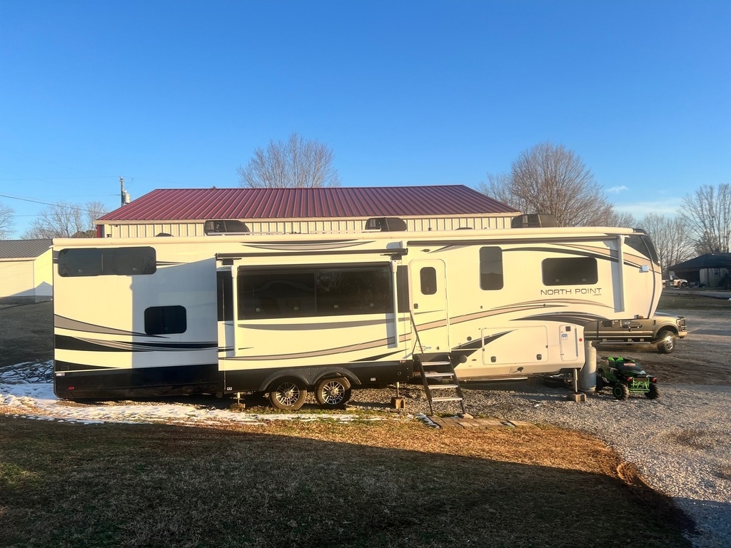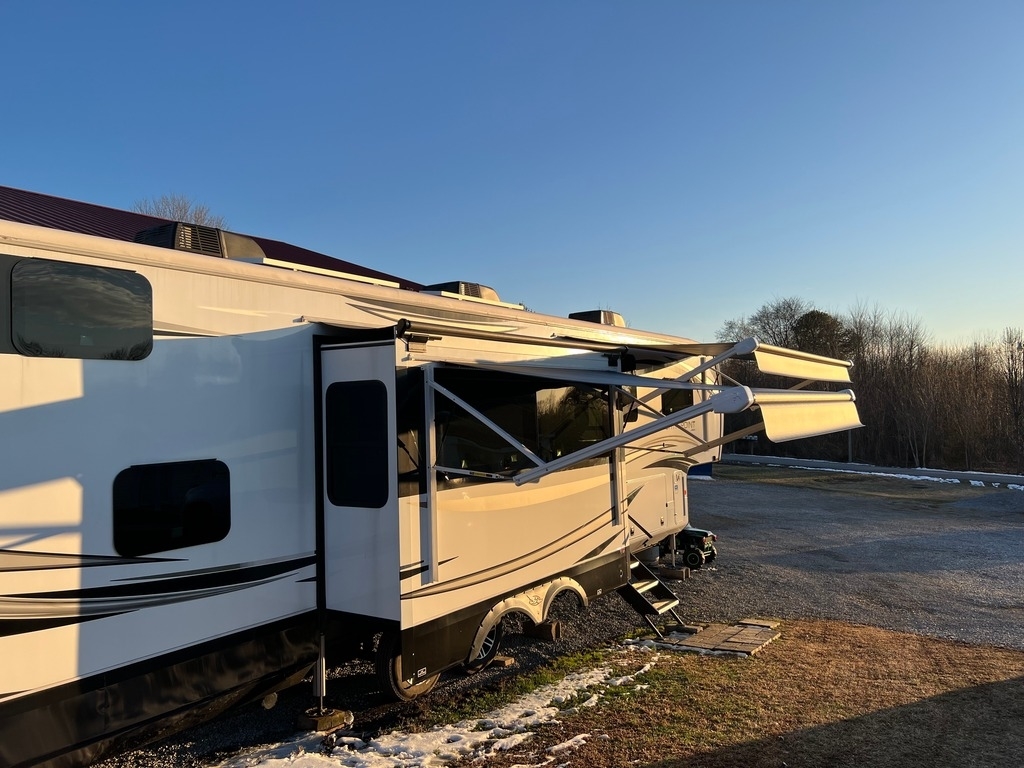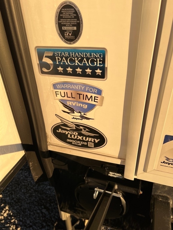This Jayco has an overall length of 43.75ft and comes equipped with 4 slide-outs, 2 power awnings, 3 A/C units, 2 bathrooms, 2 bedrooms, a washer/dryer, upgraded suspension, tire package, and room to sleep 7. This unit is well-maintained and pet-friendly.
