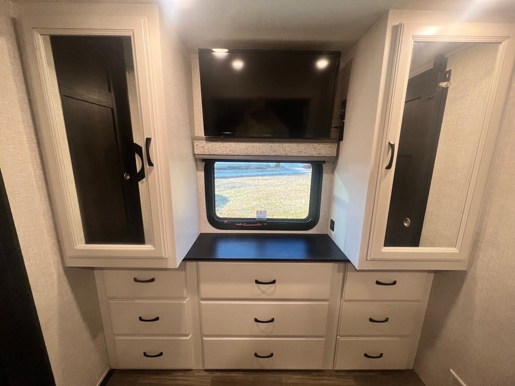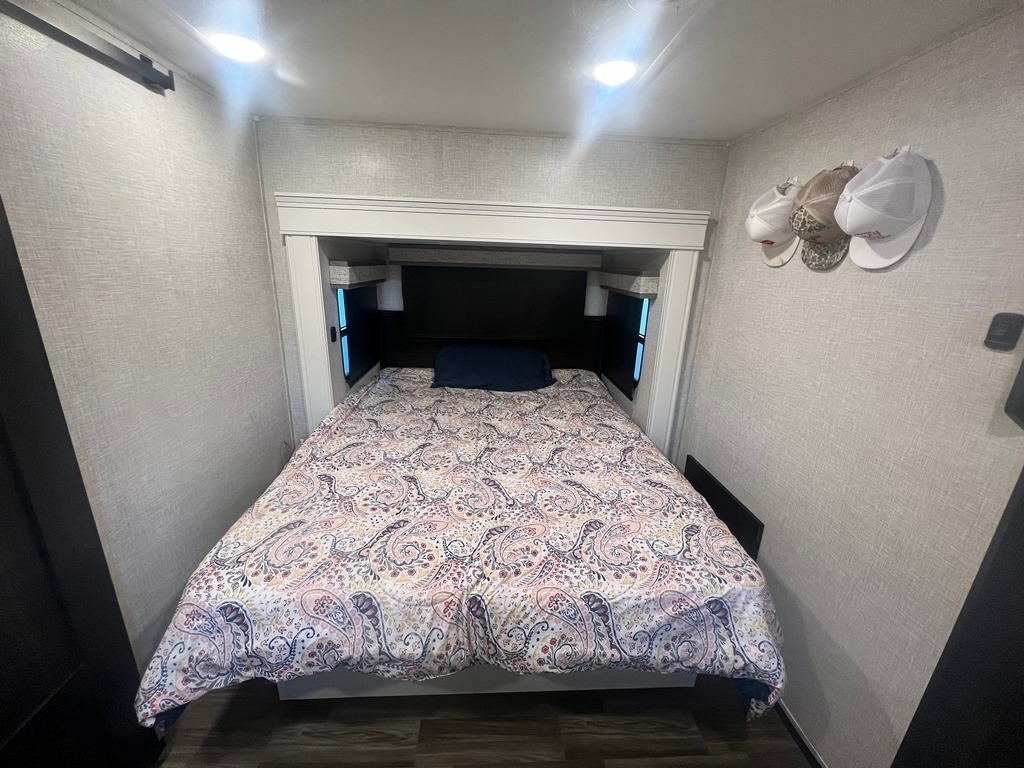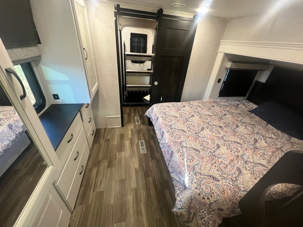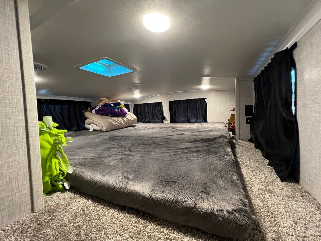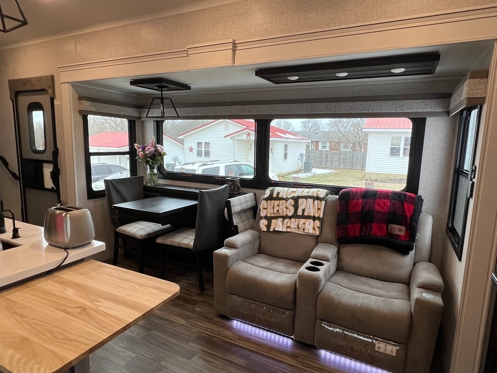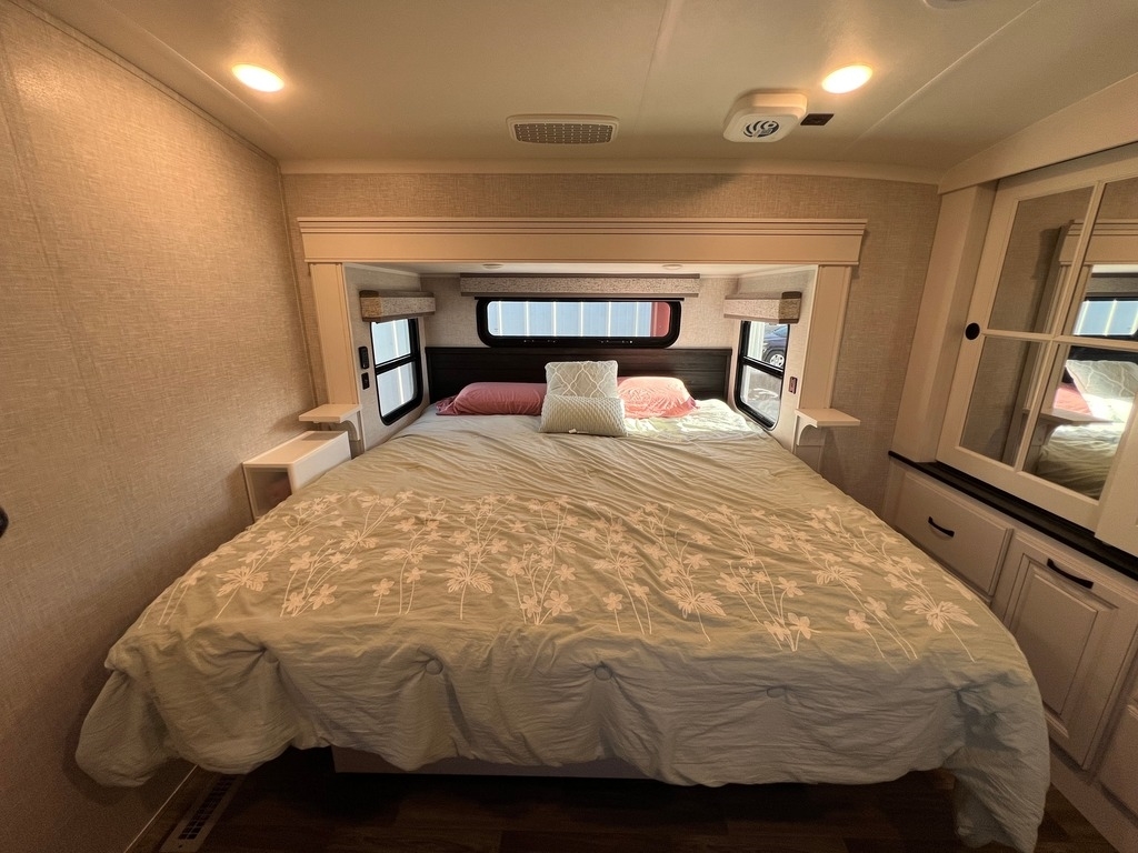 This Jayco has an overall length of 43.75ft and comes equipped with 4 slide-outs, 2 power awnings, 3 A/C units, 2 bathrooms, 2 bedrooms, a washer/dryer, upgraded suspension, tire package, and room to sleep 7. This unit is well-maintained and pet-friendly.