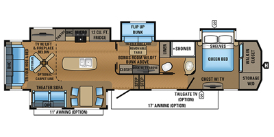 This North Point has an overall length of 42.6 feet and comes equipped with 4 power retractable slide-outs, 2 power awnings, 2 A/C units, a bonus room, a fireplace, an outdoor kitchen, and plenty of room to sleep 8. This unit has been well-maintained.