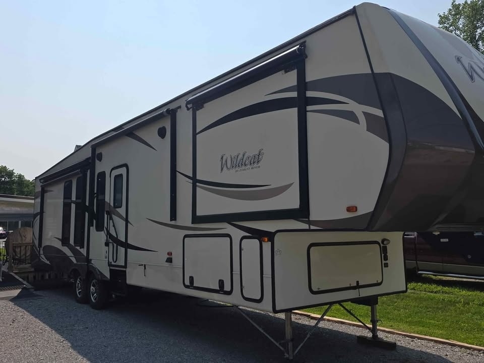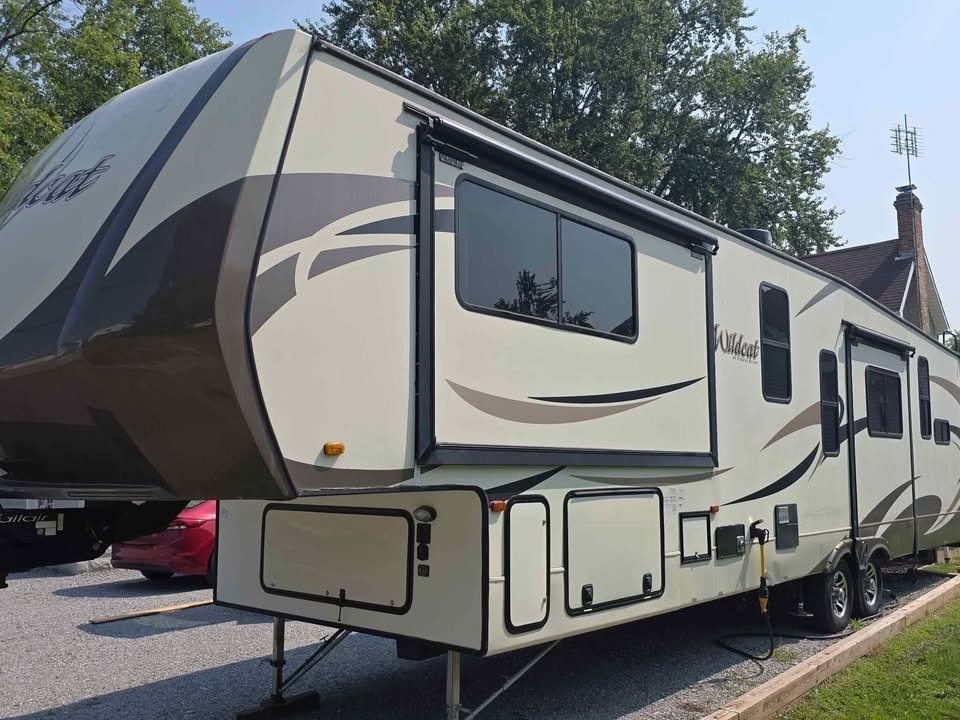 This 2018 Forest River Wildcat is a 41-foot fifth wheel designed with comfort, luxury, and practicality in mind. Built with durable aluminum construction and fiberglass sidewalls, this Wildcat features 4 slide-outs with awning covers, dual power awnings, and an auto self-leveling hydraulic jack system for hassle-free setup. With a spacious layout, modern amenities, and abundant storage, it’s an ideal choice for extended trips or full-time living.