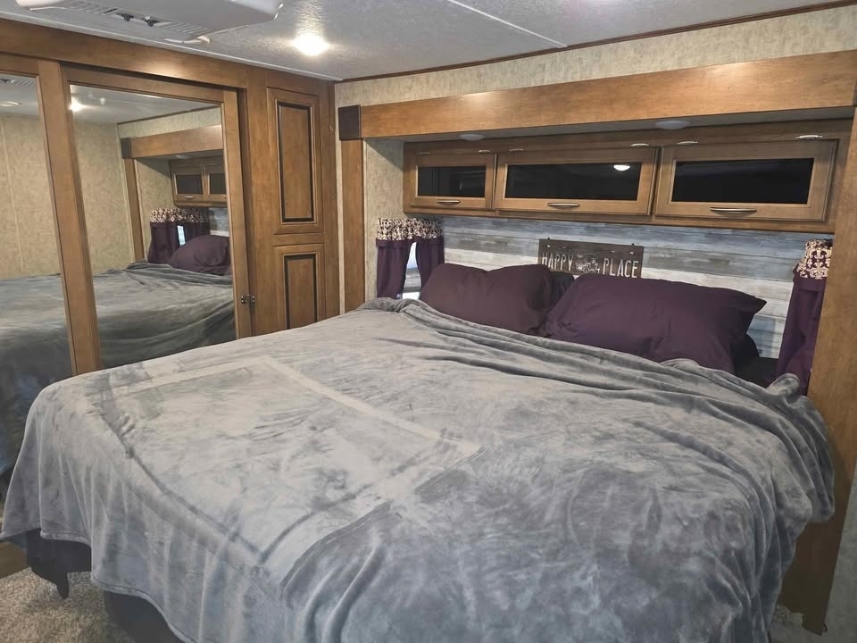 “This 2018 Forest River Wildcat 37WB has been well cared for and is in excellent condition. With its spacious 4-slide layout, king-size bed, and residential-style kitchen, it offers all the comforts of home on the road. The auto-leveling system and abundant storage make it perfect for long trips or extended stays.”