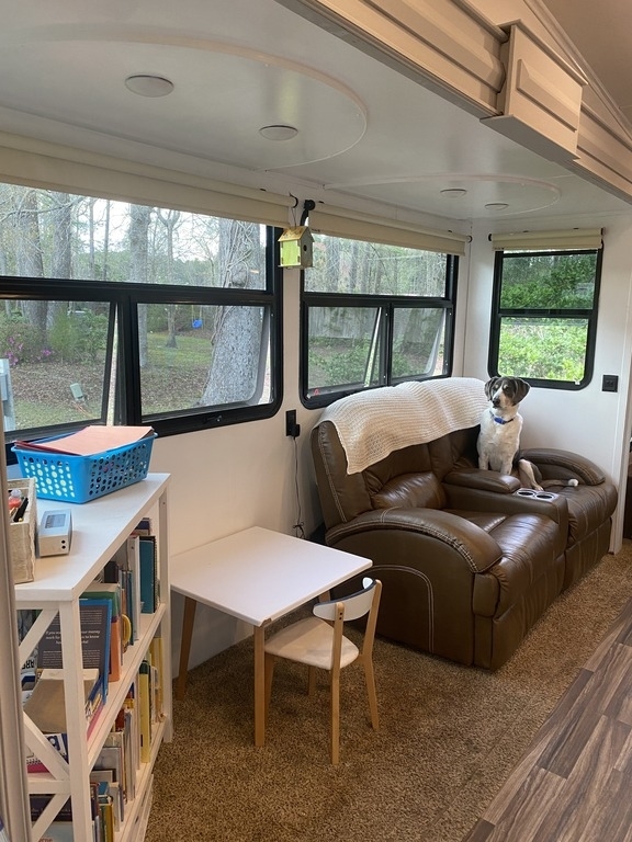 Dinette and Chairs Were Removed to Put in a Bookshelf and Kids Table in Its Place