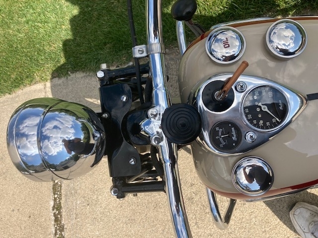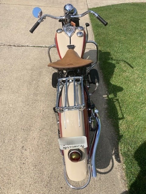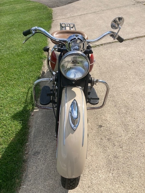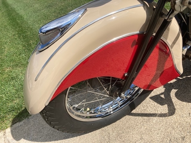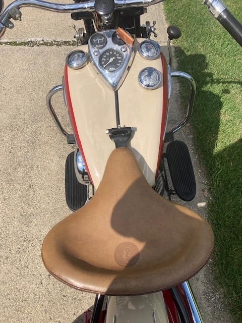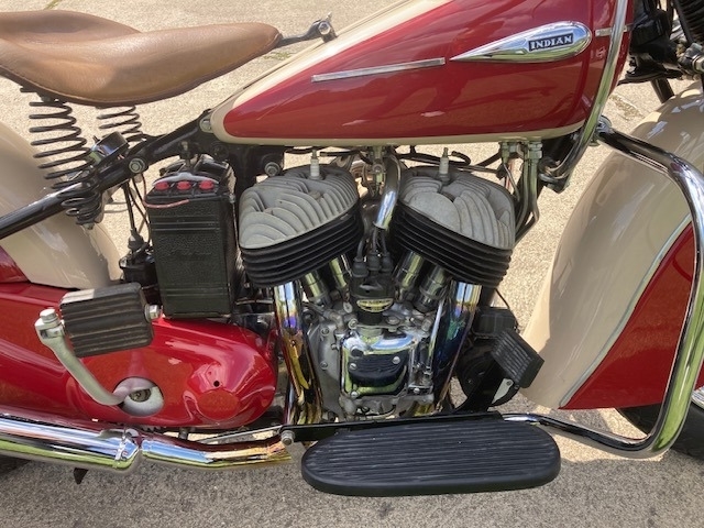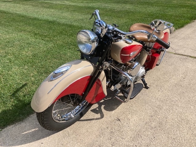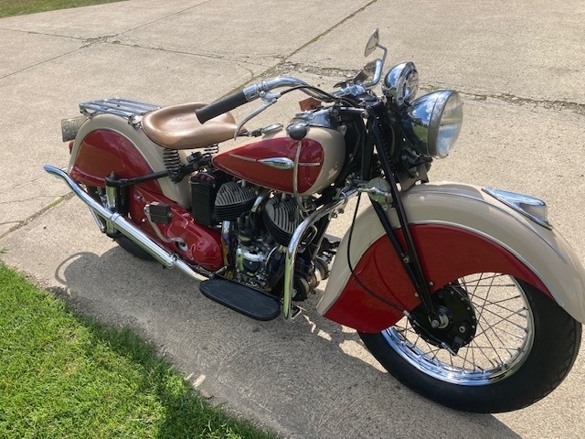 “For sale is a 1941 Indian Sport Scout. This motorcycle was completely restored for a private collection in 2000 and placed on display. During this restoration, the engine was stroked to 52 cubic inches and professionally built. The bike runs very strong and smooth. The bike has just six miles on the drive train with several heat cycles during the tuning. This cycle has a clear Ohio title with odometer non-actual. This is a rare 1941 squish tail sport scout. For the collector or person looking for a running/ driving Indian show bike or museum piece, this is a great addition to anyone’s collection. The bike has just had complete fluid changes to ensure fresh lubricants are present along with carburetor cleaning and tuning. A full electrical check was done to ensure charging system and lights are 100%. The battery has been upgraded to a sealed 6-volt within the original battery case to ensure no acid destruction to the bike and stock appearance. The Ohio title is listed by the engine. The frame number cannot be verified due to heavy paint from the restoration. I cannot verify this is numbers matching nor would represent it as such without scraping the paint which would be up to the buyer. This is an as-is sale. If delivery is needed this is not a problem. I can personally deliver with a closed trailer for reasonable time and mileage charges. The asking price is $32,000. Reasonable offers will be considered.”