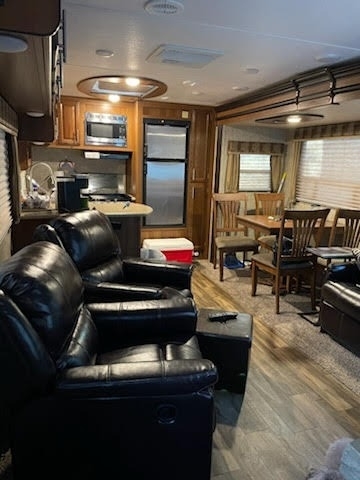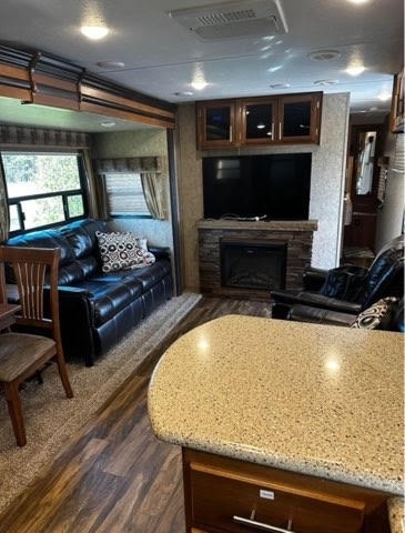 This Tracer has an overall length of 33.75 feet and comes equipped with 1 power retractable slide-out, a 19-foot power retractable awning, 1 A/C unit, a fireplace, and plenty of room to sleep up to 6. This unit has been well-maintained.