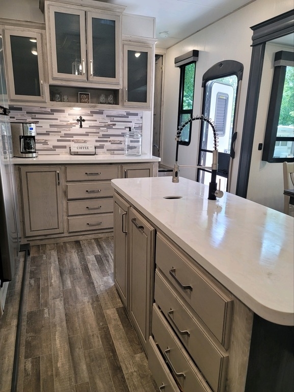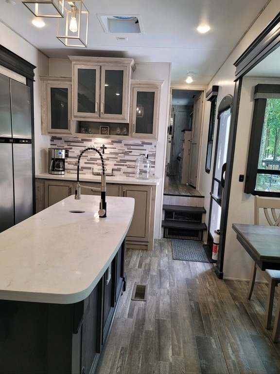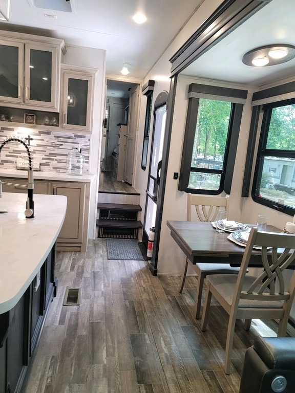 390DS enhances your camping experience with an exterior kitchen for outdoor