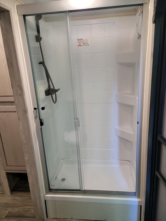 bathroom boasts a roomy shower and ample storage for all your essentials.