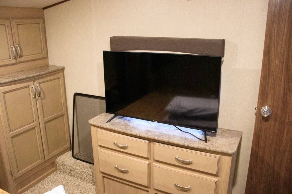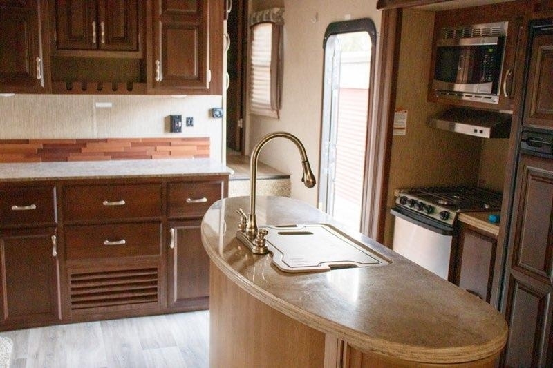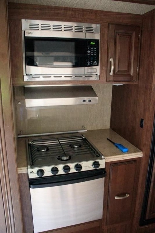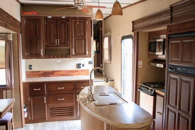 with 3 power retractable slide-outs, 1 power retractable awning, a fireplace,