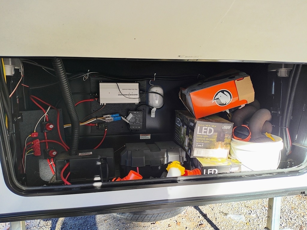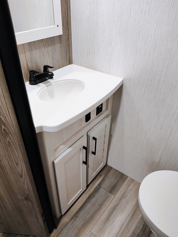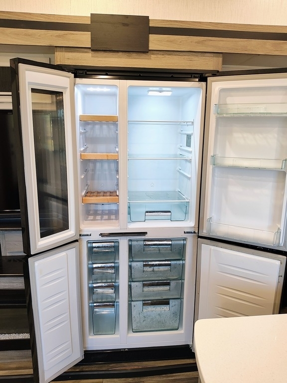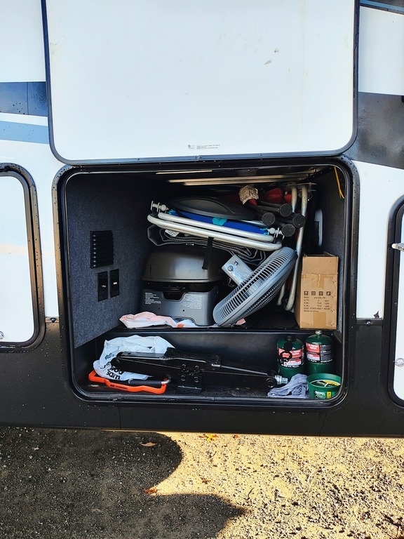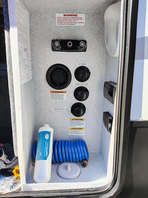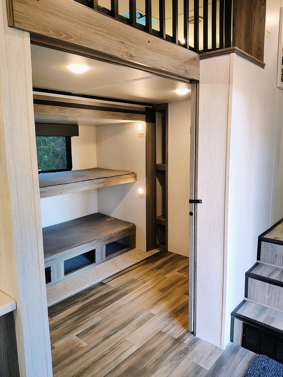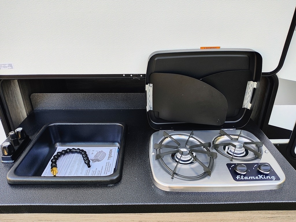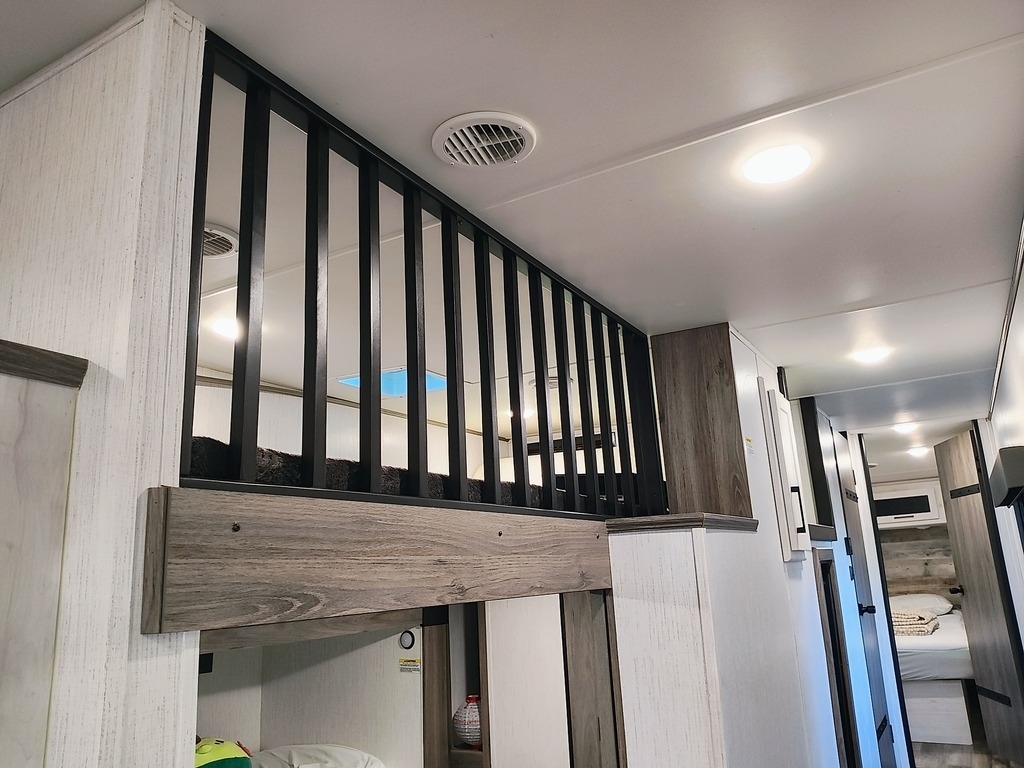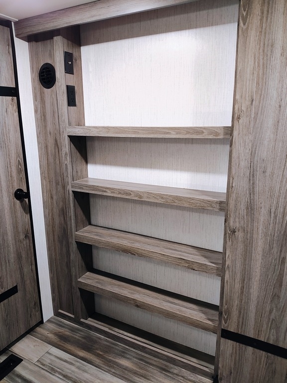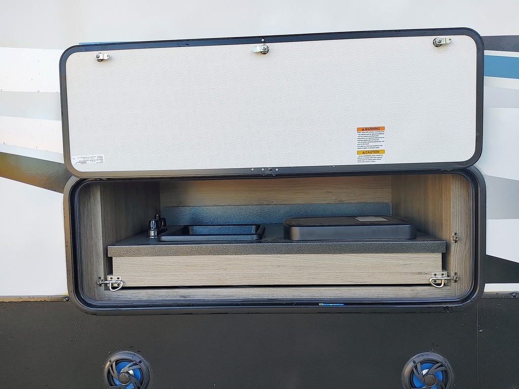 The safety features include essential detectors for smoke, carbon monoxide, and propane, as well as emergency exits. Additionally, the unit comes with an automatic leveling system – powered by front and rear power jacks, ensuring stability and convenience when setting up camp.