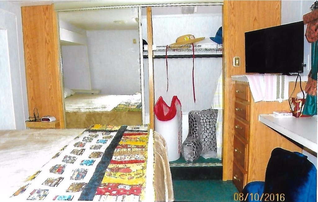 A Beautiful and Convenient walk in closet which has sliding mirrored full size doors