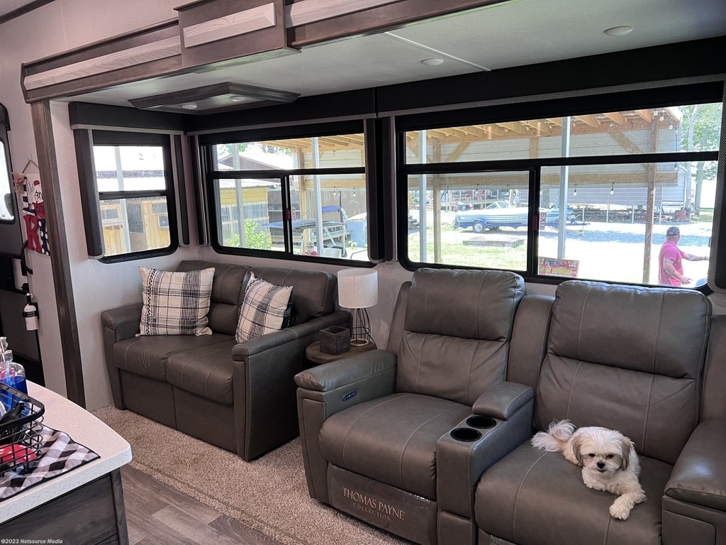 This 2020 Keystone Montana High Country 385 BR has an overall length of 40 ft 8 inches feet, coupled with 4 slide-outs, 2 Awnings, 2 AC Units and of room to sleep 8. This is a non-smoking RV that has only had one hypo-allergenic dog inside and has been stored in a covered bay. There have not been any accidents or water damage.