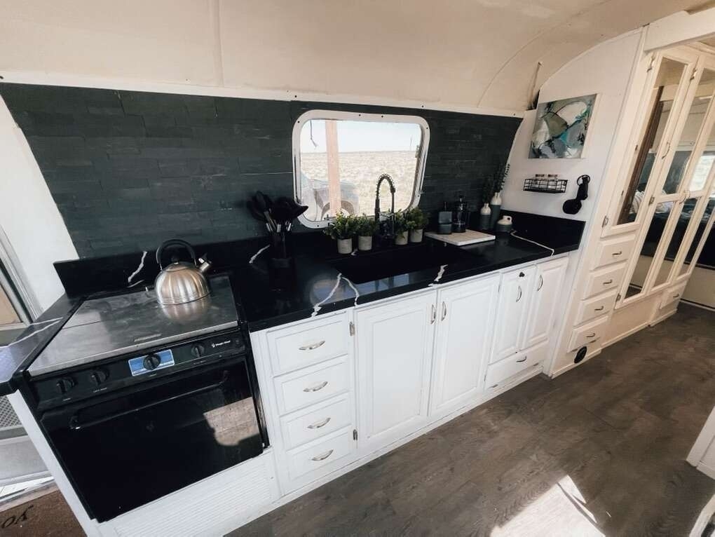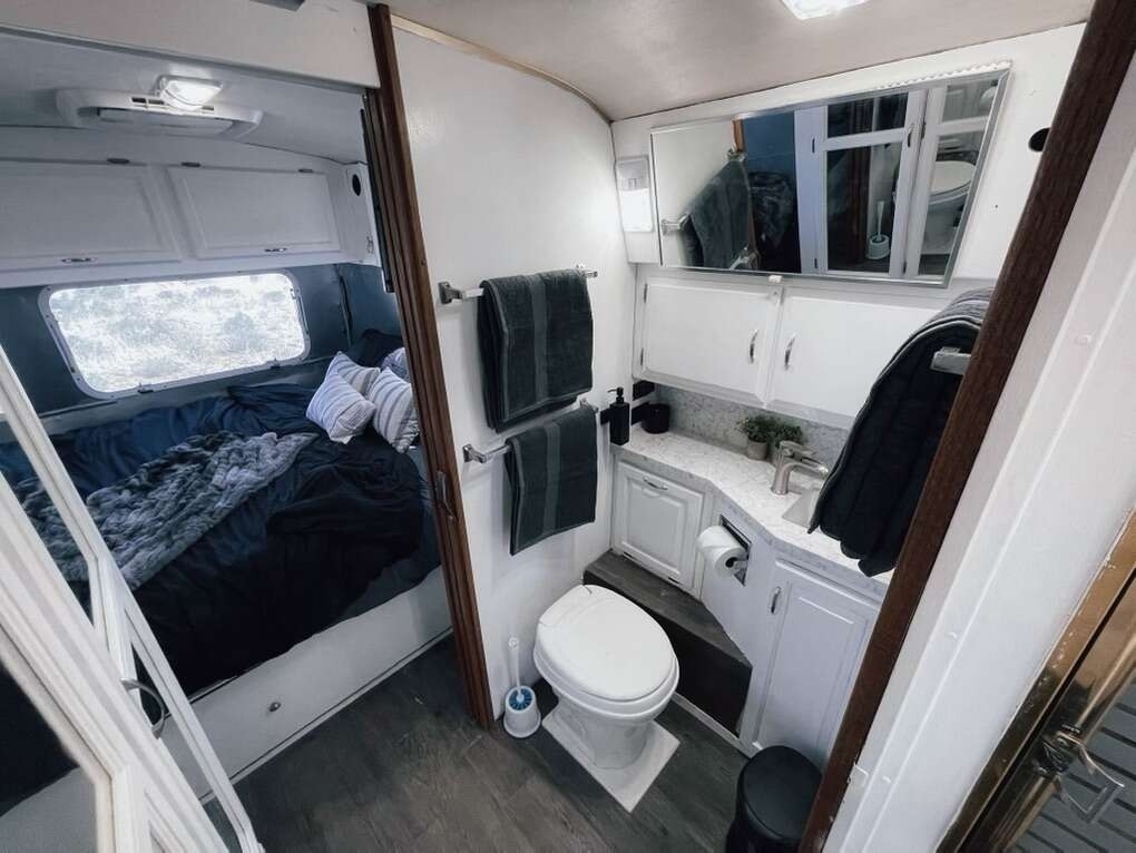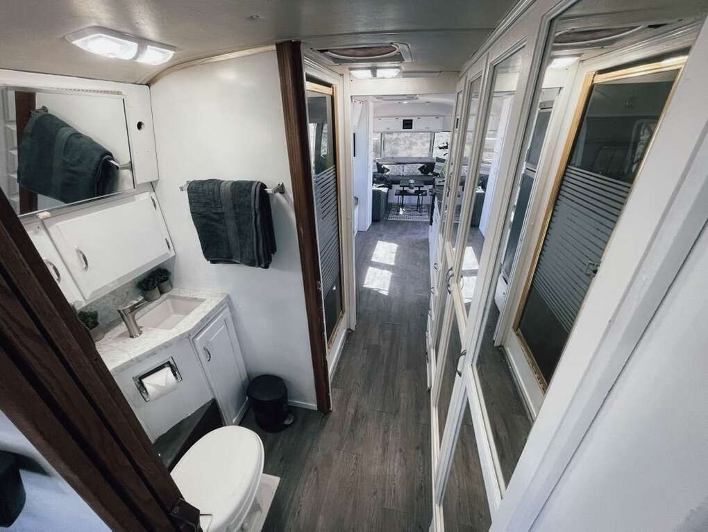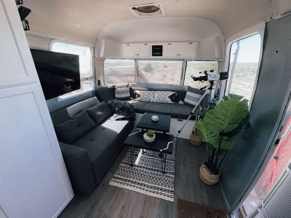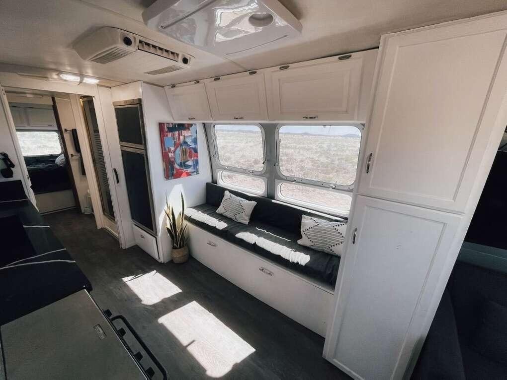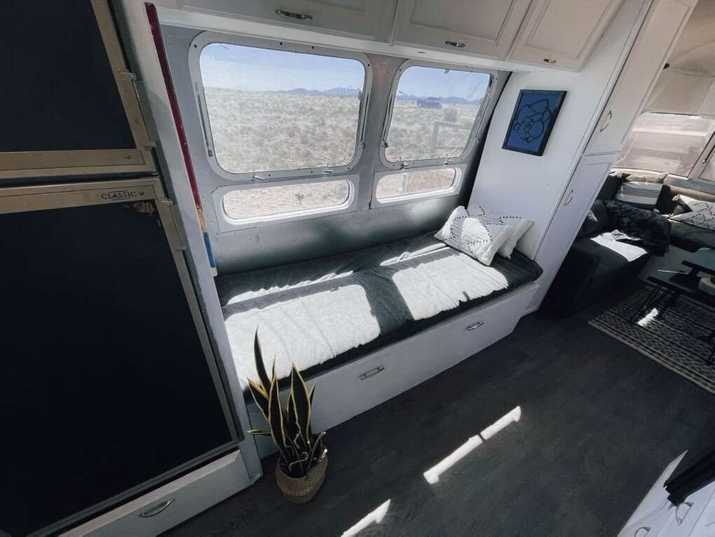 This Airstream has an overall length of 34’ and was renovated 3 years ago. With a gross vehicle weight of 8,500 it sleeps 5 and is equipped with 1 awning and AC.