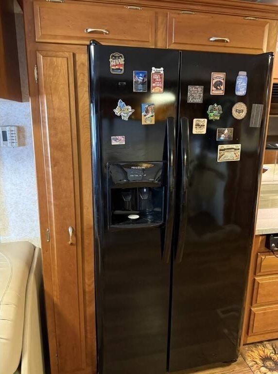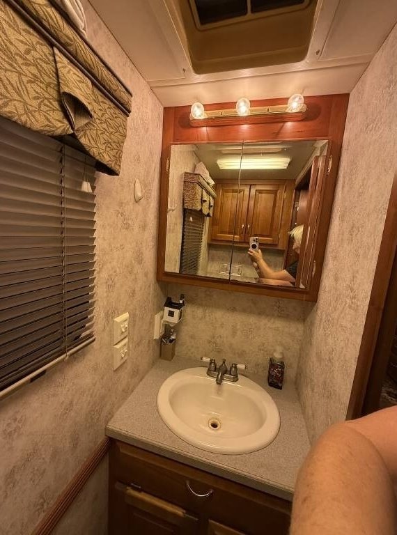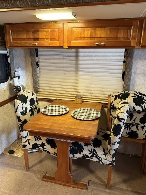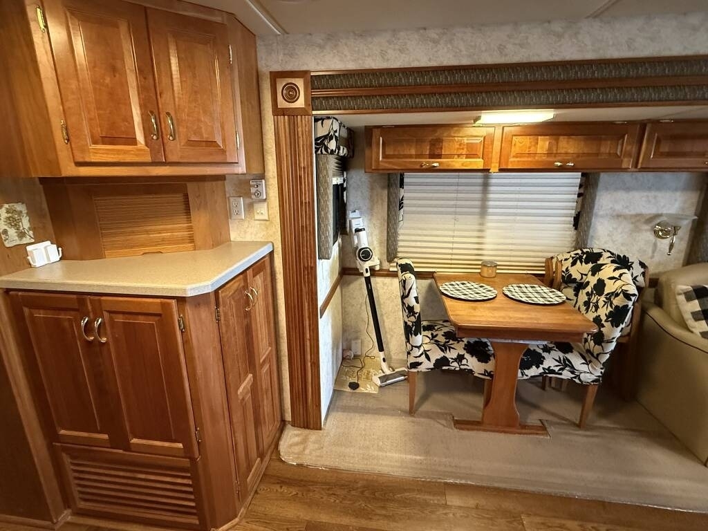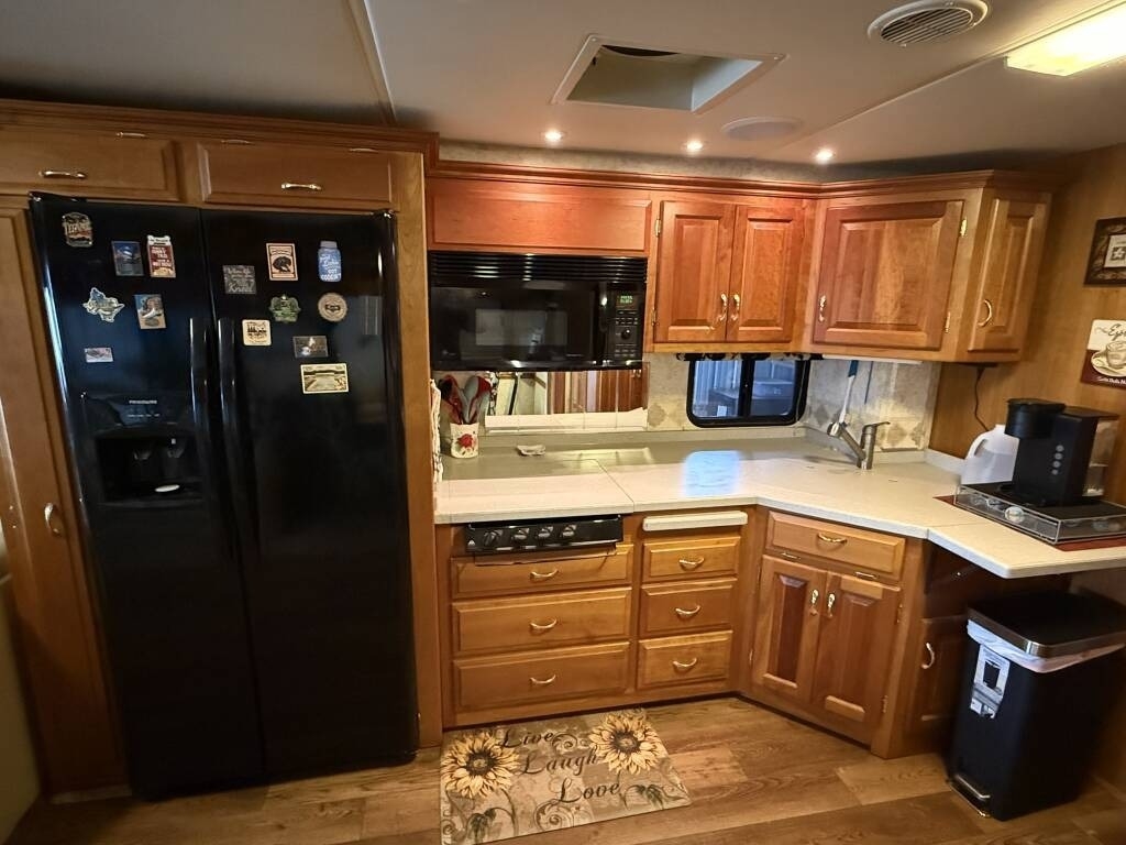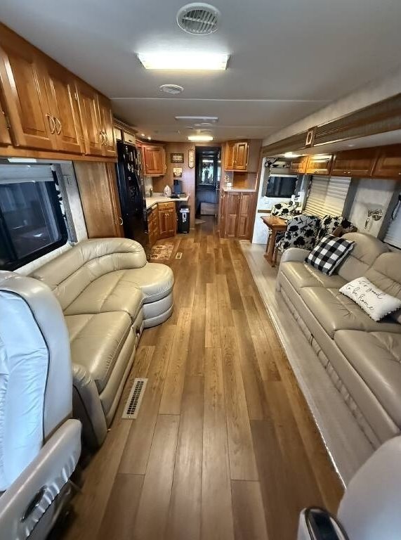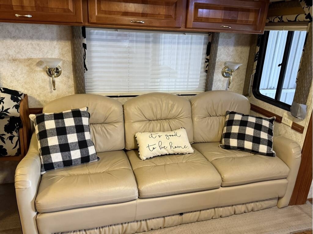 “This 2004 Newmar Dutch  Star Class A RV is a luxurious, well-maintained coach that's been kept in  enclosed dry storage and is in excellent condition. Powered by a strong 370hp  Cummins diesel engine with just 67,000 miles, it’s ready for many more  adventures. Inside, find a spacious king-size bed, a washer/dryer combo, two  separate bathroom sinks, and upgraded vinyl flooring throughout. The full-size  fridge runs on an inverter, offering convenience on the road, and the living  area includes a comfortable couch that converts into a full-size bed.  Entertainment is covered with two 32” Roku TVs. The Toyo tires are about 3  years old, with approximately 5k-6k miles on them. Please note, there is a  small rock chip in the windshield (manufacturer has stated it is fine), and the  entry steps are currently disconnected, however, they are still in working order.  The diesel generator slide tray also needs some attention. With a new battery  charger and high-end features, this Dutch Star delivers comfort, style, and  reliability for your travels.”