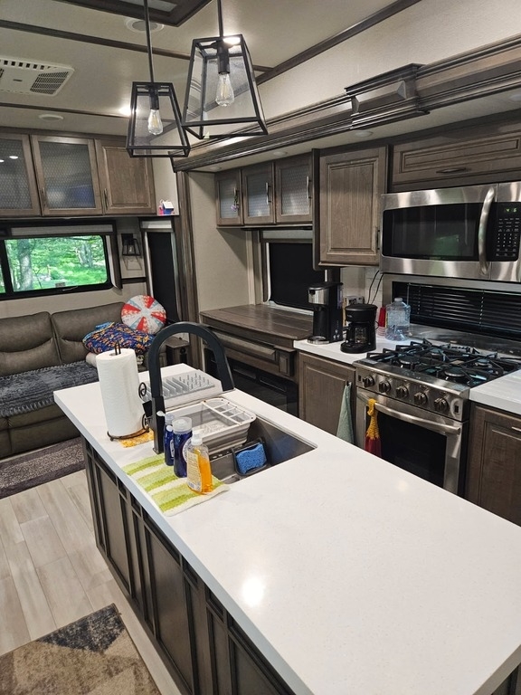slide-outs, 2 power retractable awnings, a fireplace, and plenty of room to