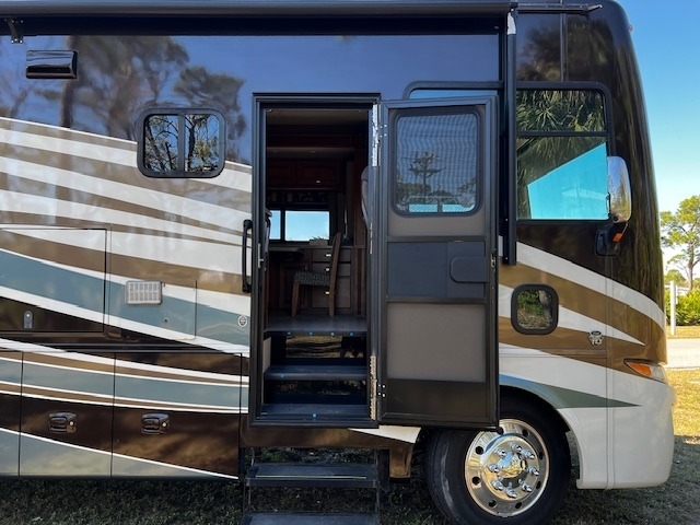 slide-outs, 1 power retractable awning, 2 A/C units, a generator, an exterior