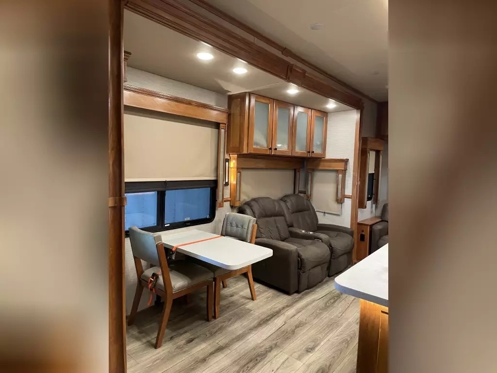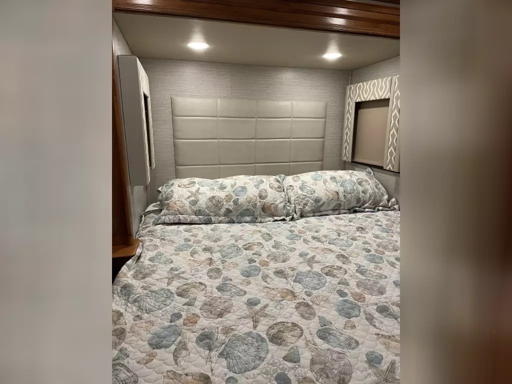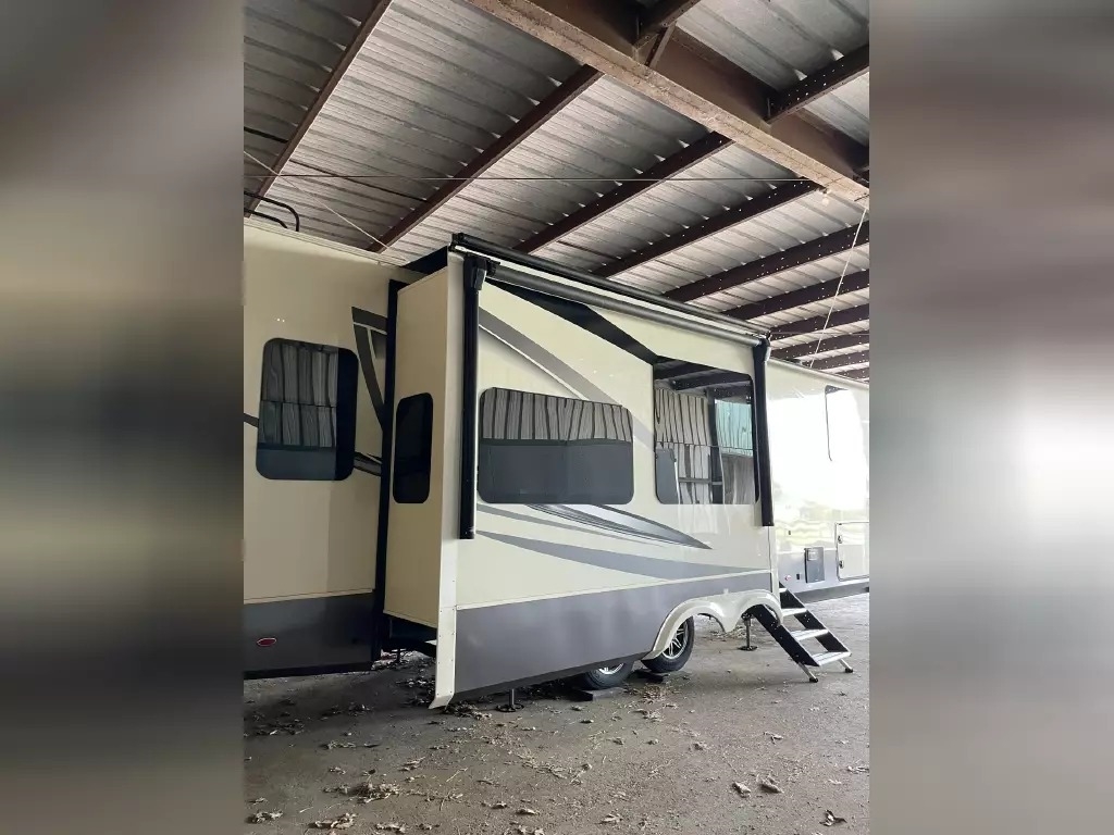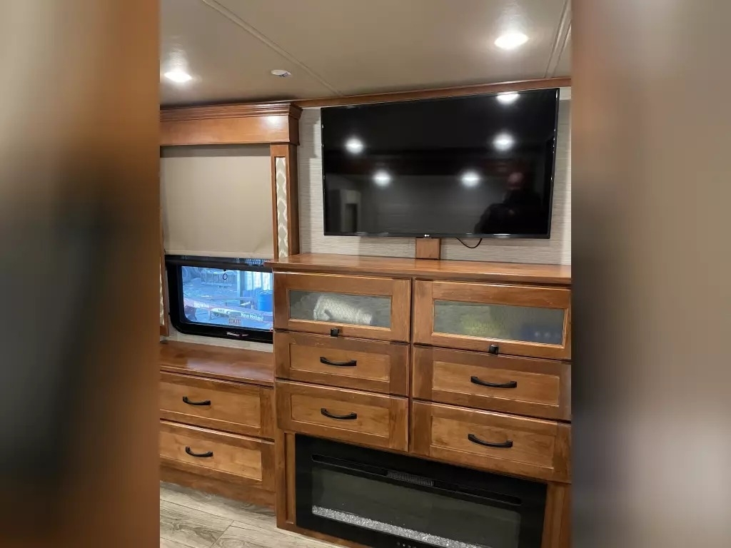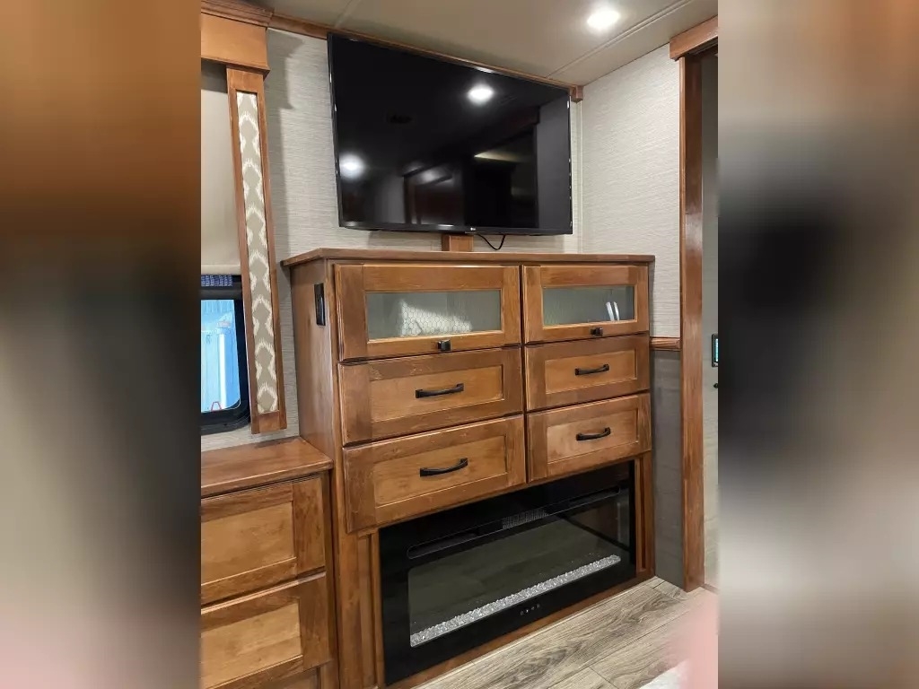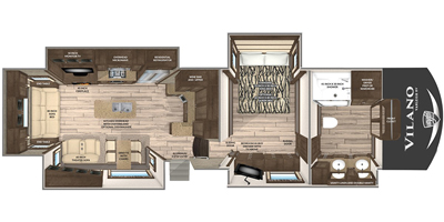 This 2022 Vanleigh VILANO 370 GB has a overall length of 39' comes equipped with 3 Slide Outs, 2 Awnings, 3 air conditioners, a heat pump, and two fireplaces with electric heat, and room to sleep 4.