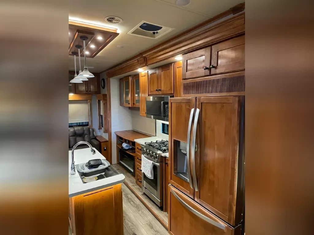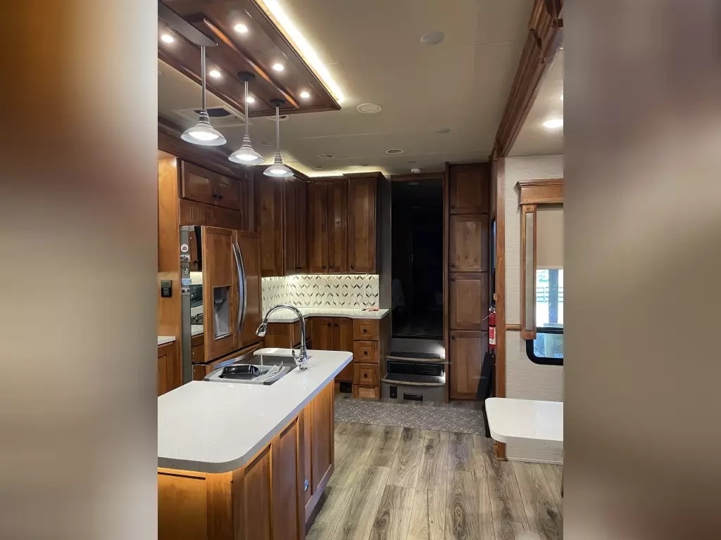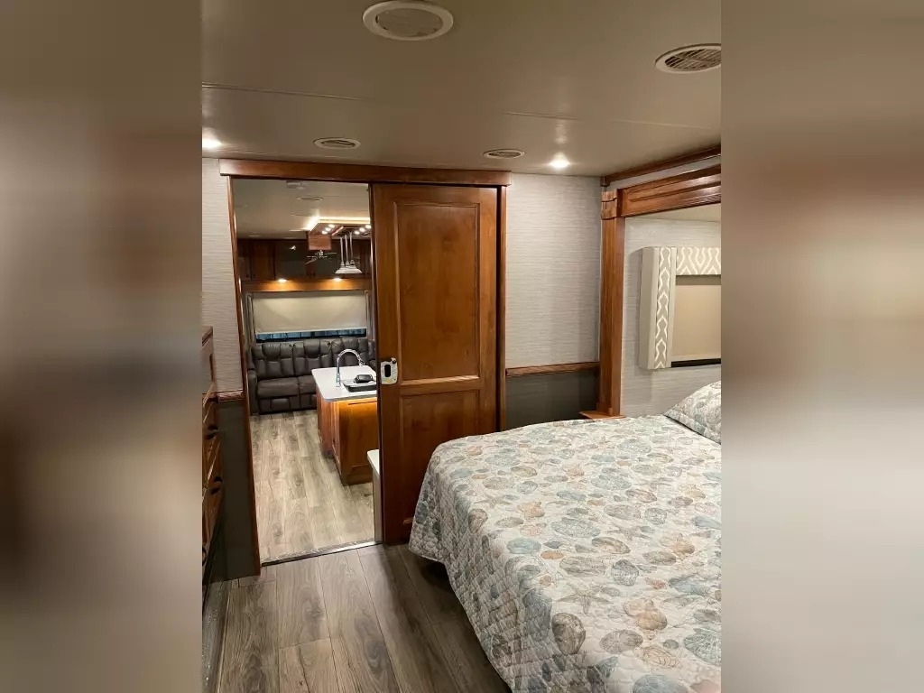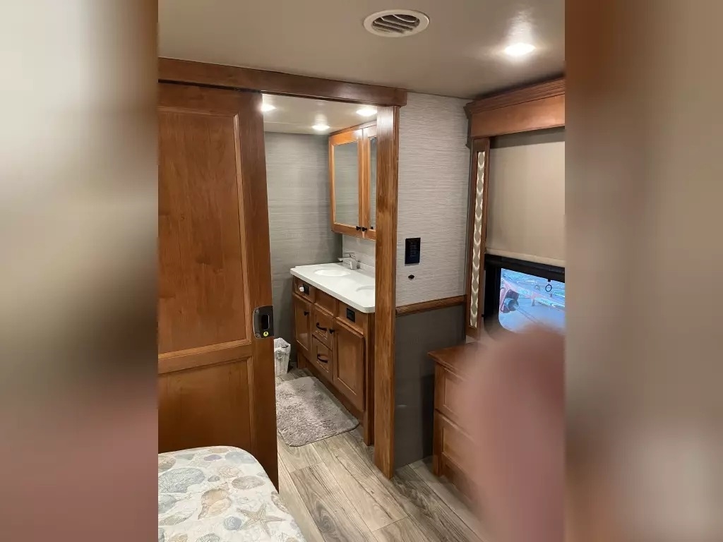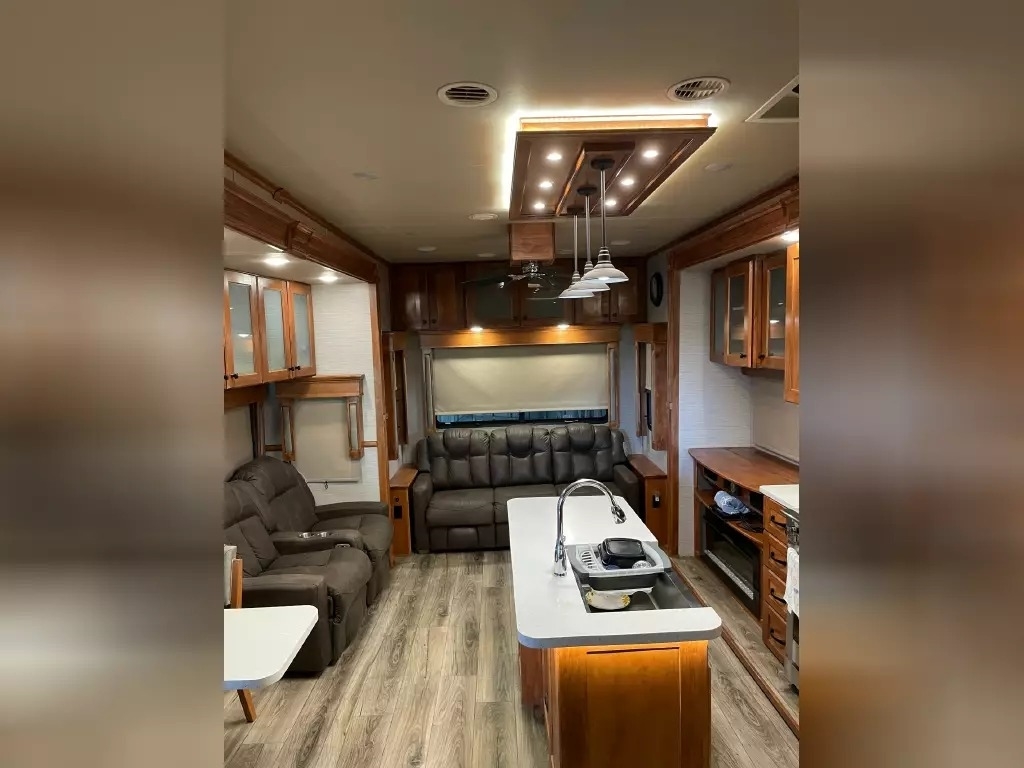This 2022 Vanleigh VILANO 370 GB has a overall length of 39' comes equipped with 3 Slide Outs, 2 Awnings, 3 air conditioners, a heat pump, and two fireplaces with electric heat, and room to sleep 4.