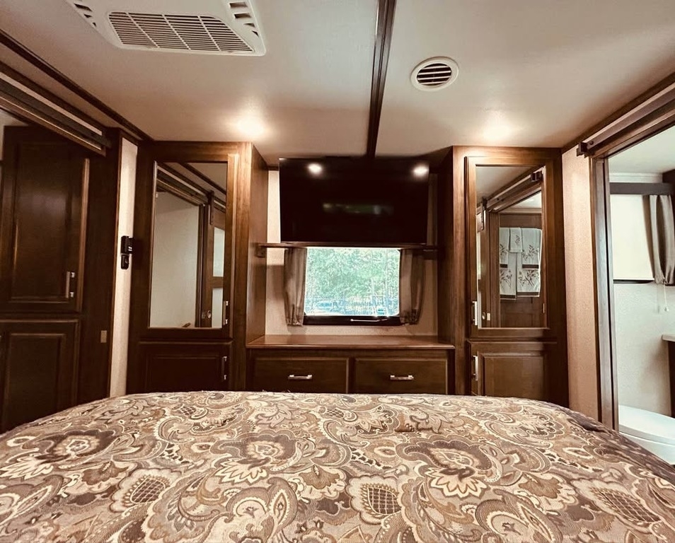 slide-outs, 2 power retractable awnings, a generator, 1½ baths, a fireplace, and